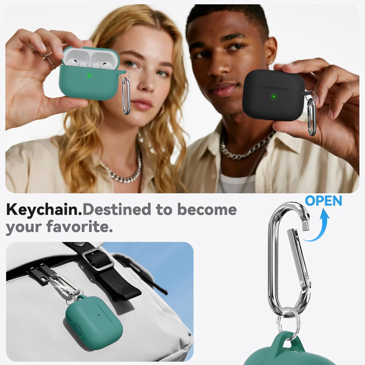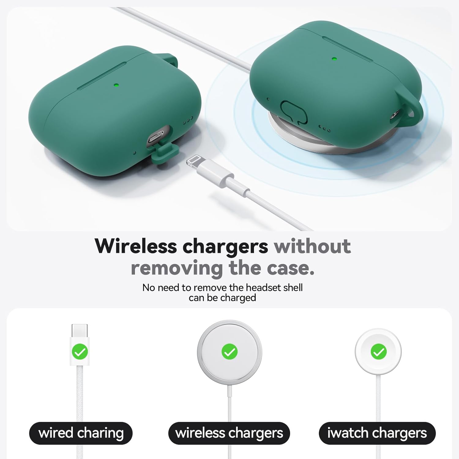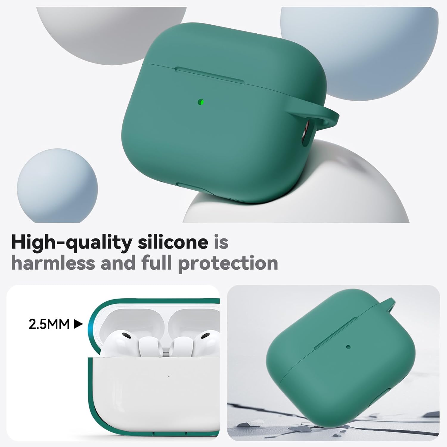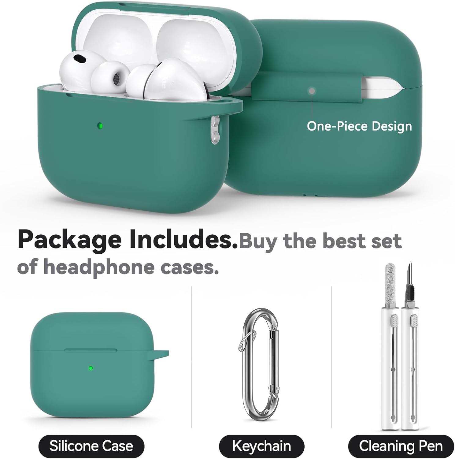 Inesore Съвместим с AirPods Pro 3 Калъф (2025) с Комплект за почистване, Силиконов защитен калъф за Apple Air Pod Pro 3rd, Унисекс дизайн - Тъмнозелен