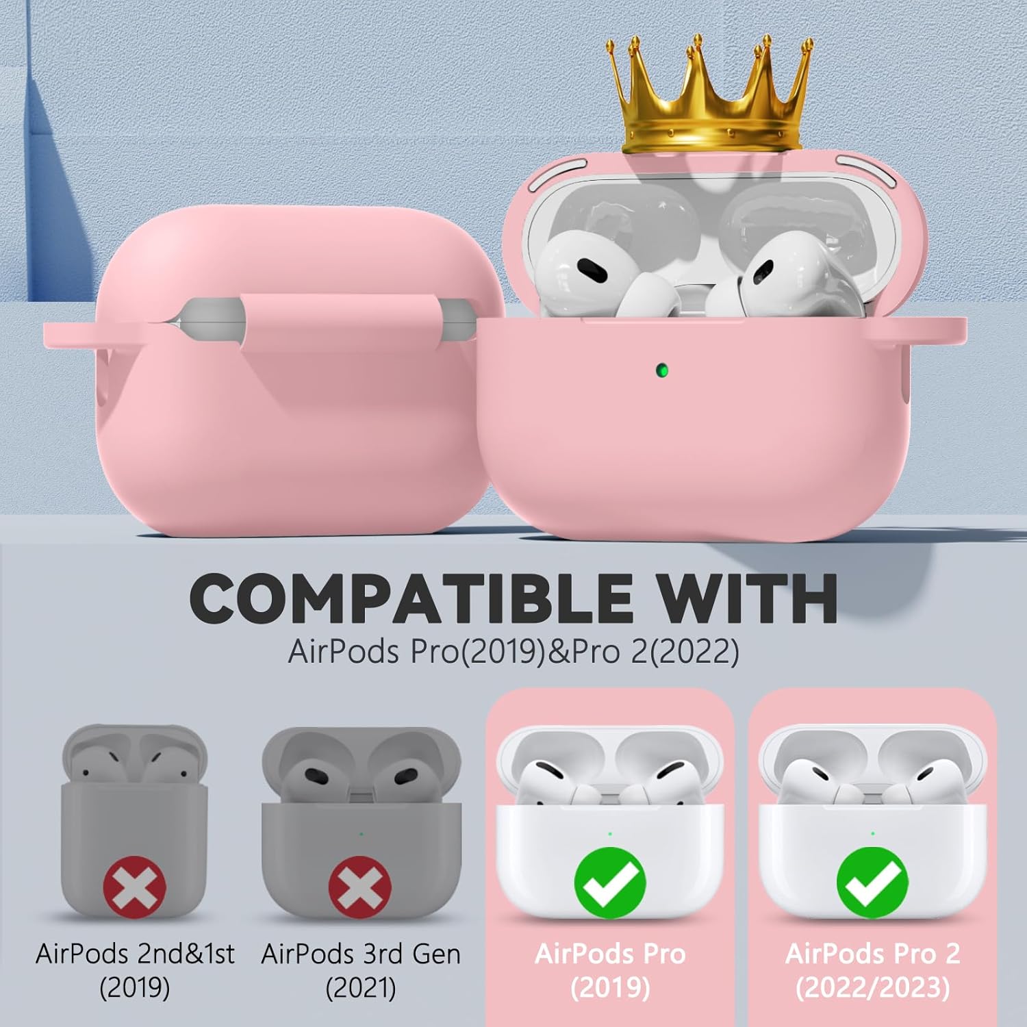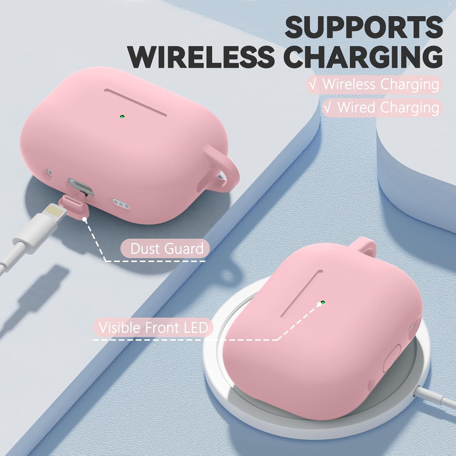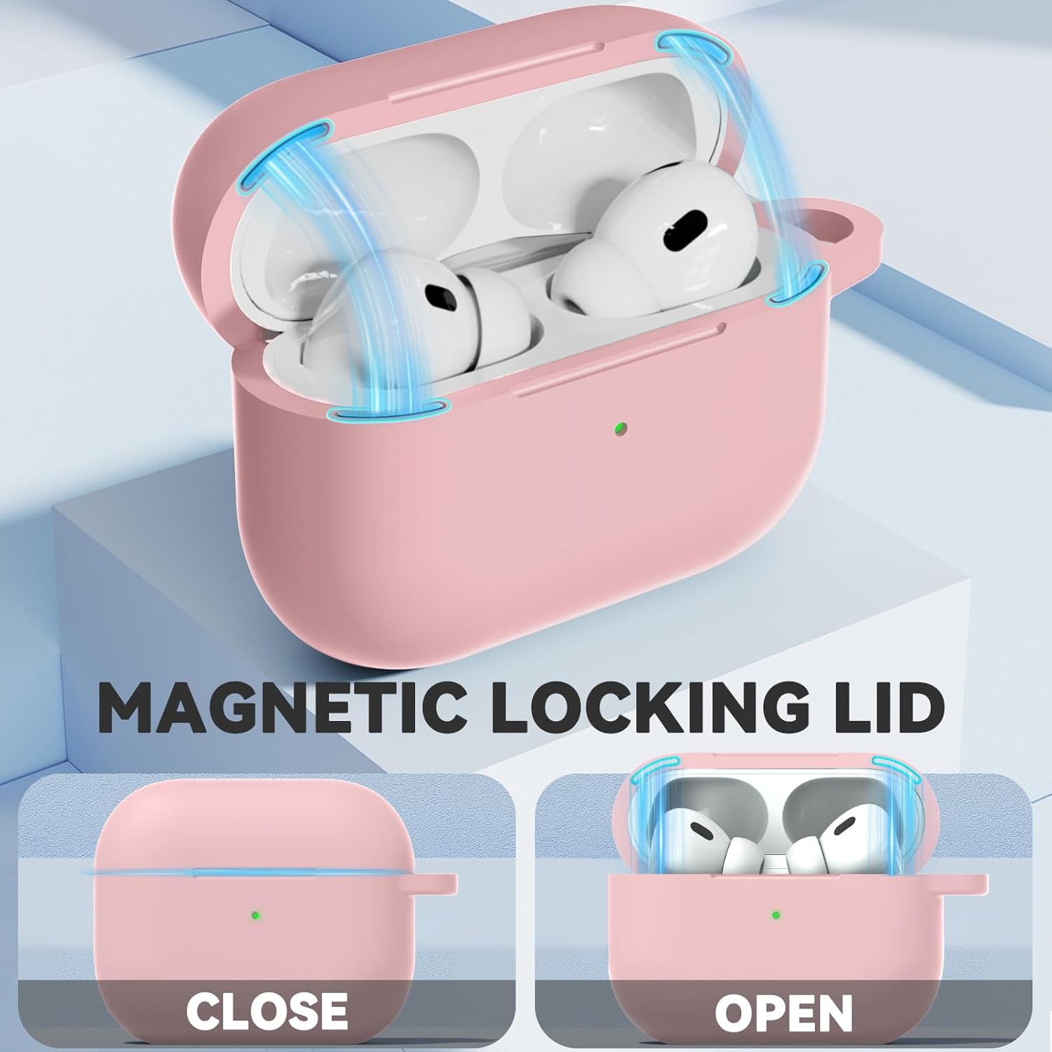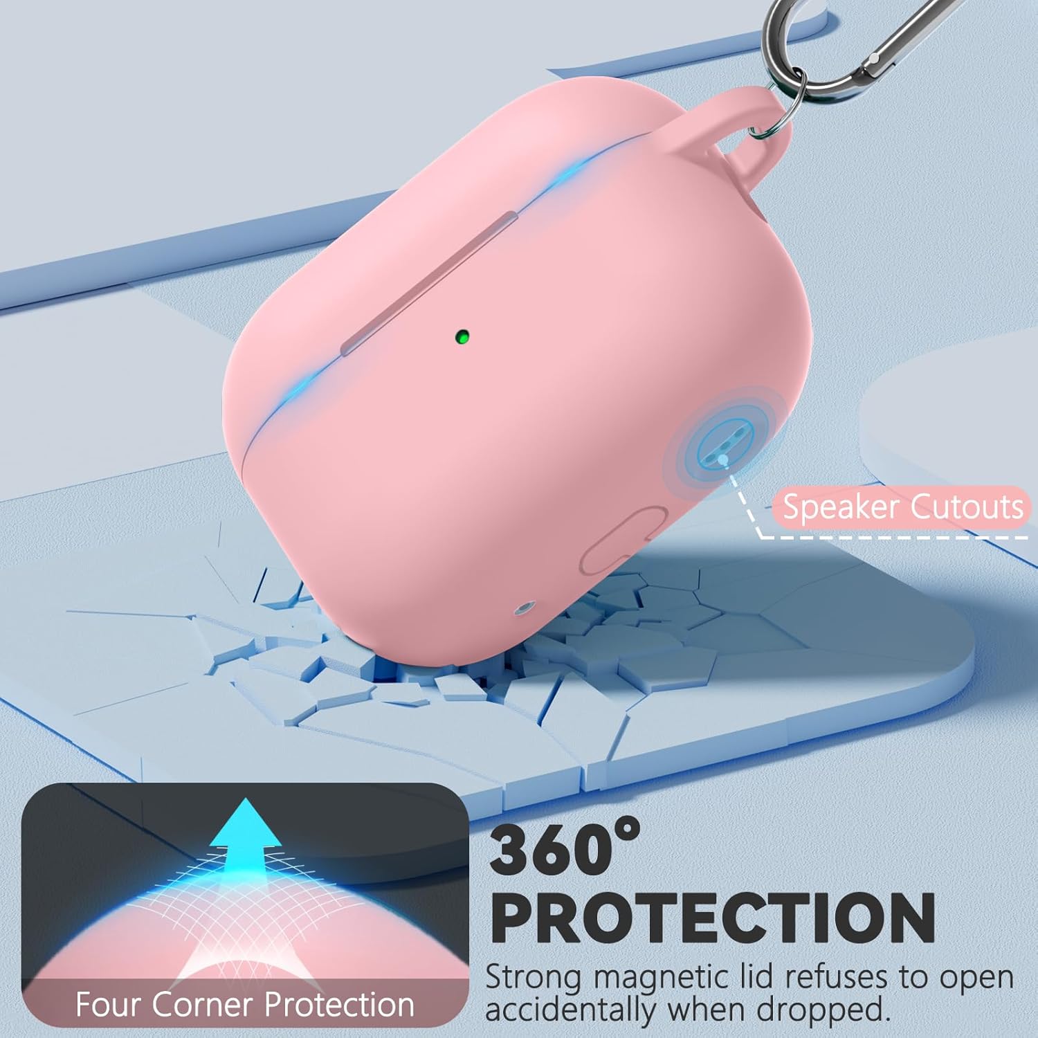 Inesore Съвместим с Airpods Pro Калъф, Силиконов защитен калъф с магнитно заключване за Apple Airpod Pro 2-ро/1-во поколение, с ключодържател и почистваща писалка (розов)