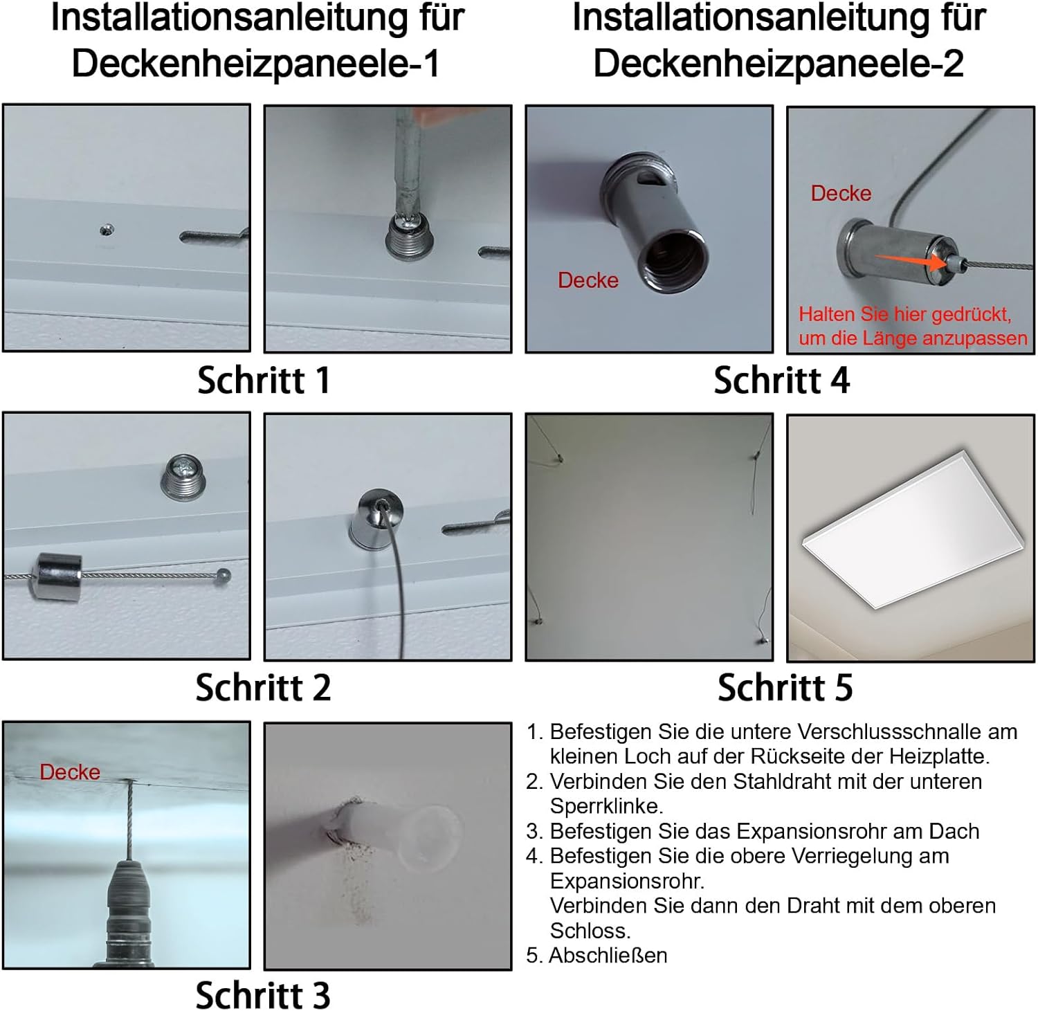 Инфрачервен нагревател за таванен монтаж 1000 вата, инфрачервено отопление за стенен монтаж - 1-3 минути при работна температура до 120 градуса - TÜV - сензорен термостат - 10 години гаранция