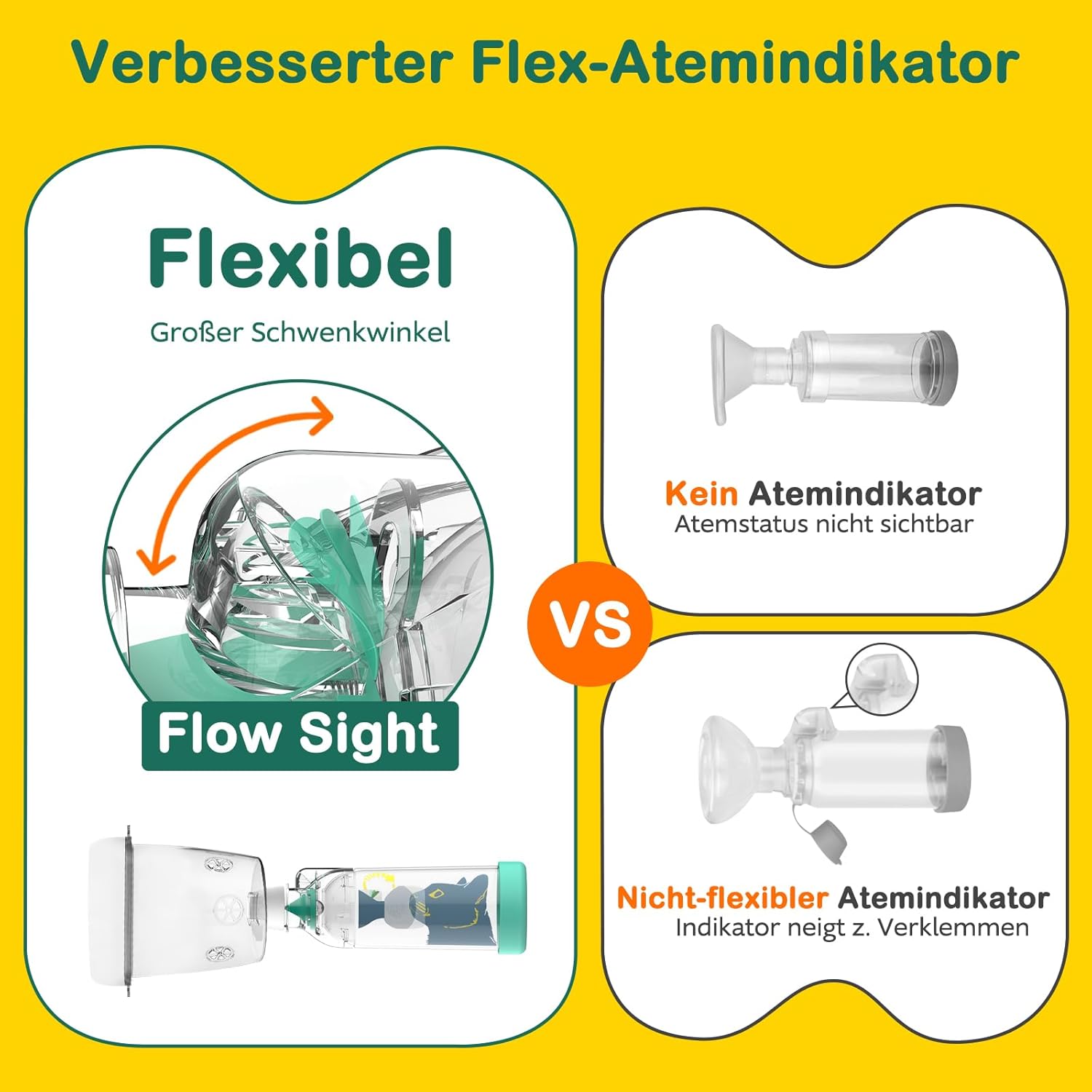 Инхалаторният клапан е със специален дизайн, който значително намалява съпротивлението на въздуха и му позволява да се отваря напълно дори при слабо засмукване. Това го прави особено подходящ за малки деца, хора с отслабена имунна система или стресирани животни. Това осигурява постоянно стабилна и ефективна употреба на инхалатора.