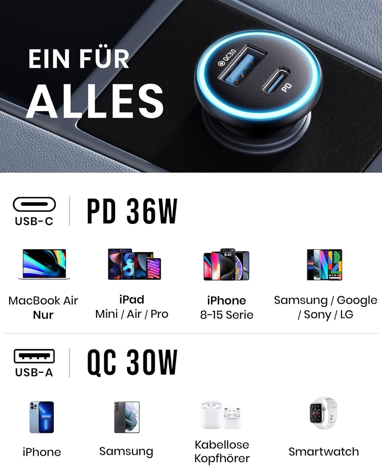 • A+C портове за всеки, купувайте го, докато спите: Независимо дали искате да зареждате смартфони, таблети, видеорегистратори или дори игрални устройства като Nintendo Switch, нашето зарядно устройство ви покрива.