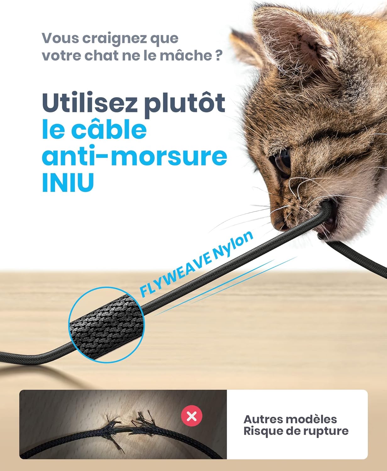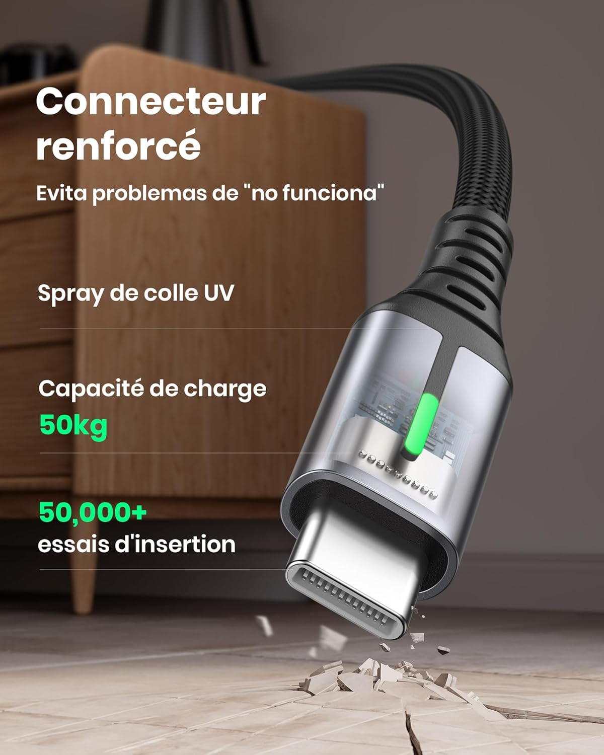• Кабел за цял живот: Ексклузивната оплетена обвивка Flyweave плюс гъвкави съединения, комбинирани с невероятното време на огъване от 45 000 пъти и 3D прецизен лазерно заварен конектор от алуминиева сплав, създават кабел, който ще издържи по-дълго от всякога.
