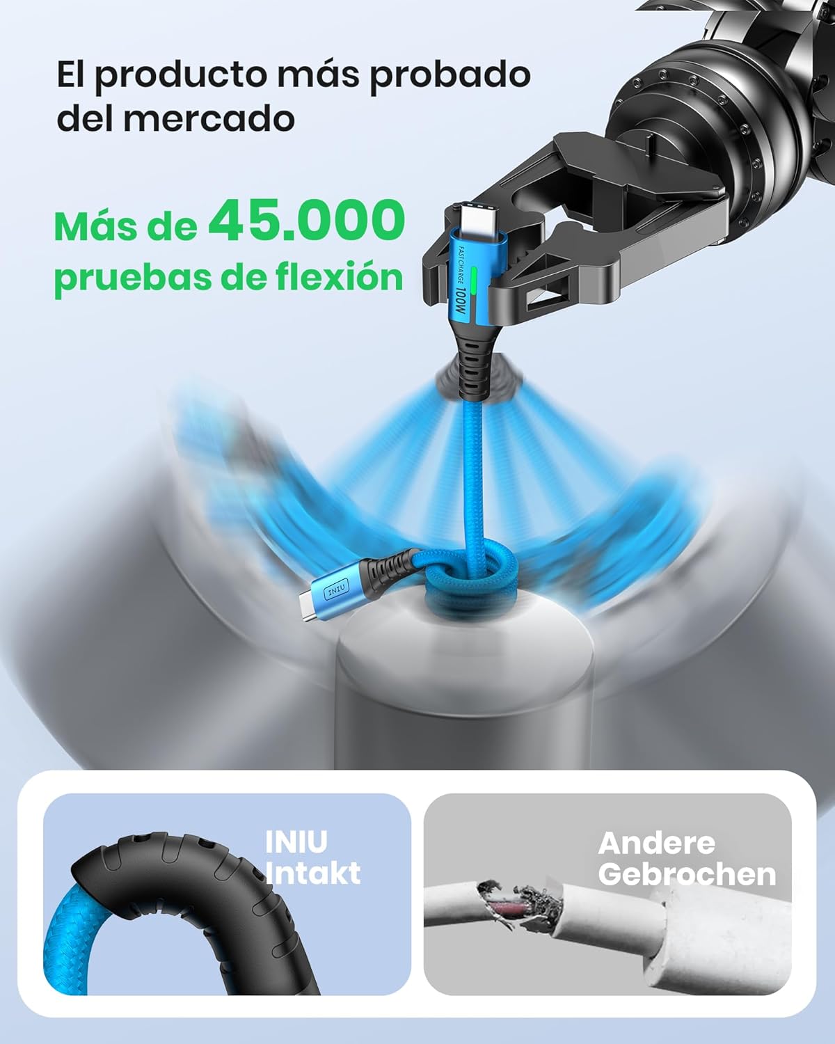 INIU USB C към USB C кабел, 100 W [2 м + 2 м, син] Type C кабел за бързо зареждане PD 5A QC 4.0 найлонов кабел за зареждане USB-C кабел за зареждане за iPhone 15 MacBook Pro 2021 iPad Air Samsung S22 PS5 Pixel 7
