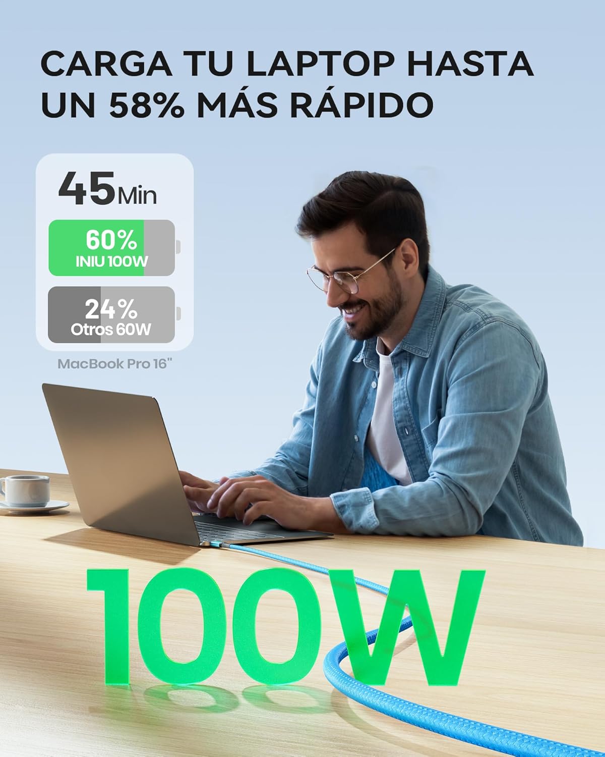 • 100W супер бърза изходна мощност: несравнимата 5A 100W PD технология издига скоростта на зареждане на следващото ниво - невероятно бързо зареждане от вашия Samsung Galaxy S22 до 89% за 35 минути или от вашия MacBook Pro до 100% само за 1,9 часа.