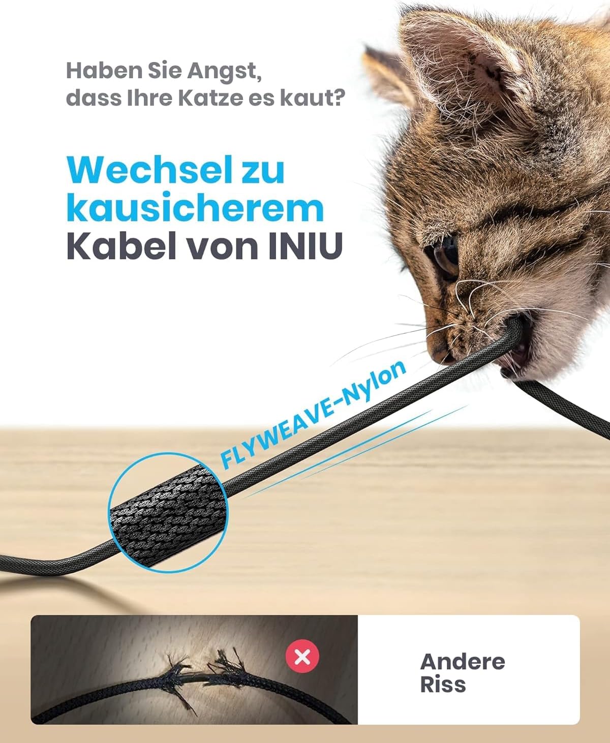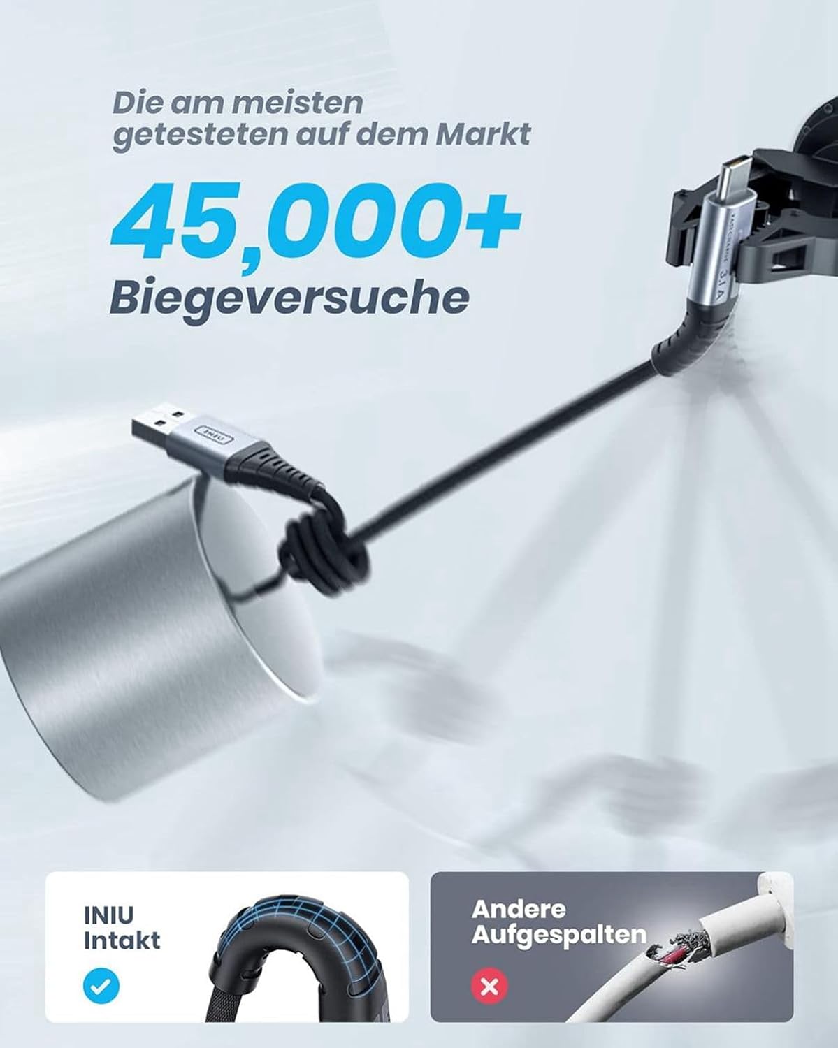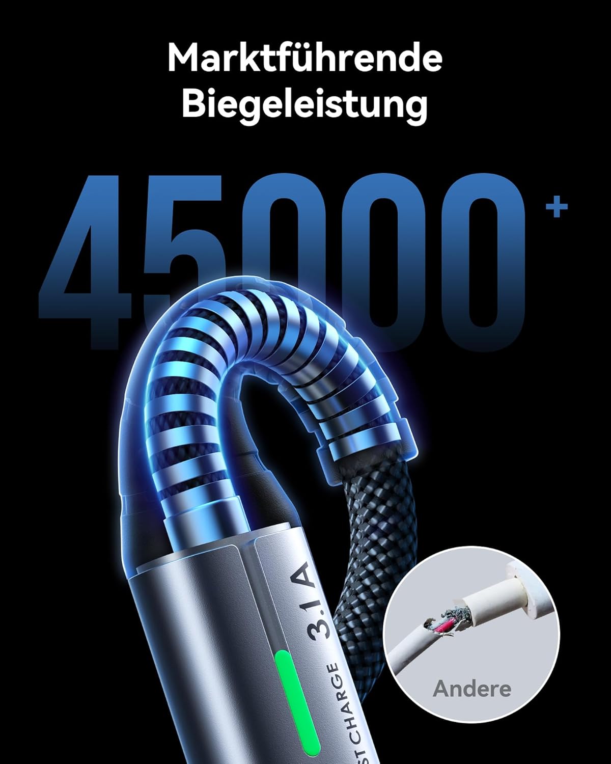 • Кабел за цял живот: Ексклузивната оплетена обвивка Flyweave плюс гъвкави съединения, комбинирани с невероятното време на огъване от 45 000 пъти и 3D прецизен лазерно заварен конектор от алуминиева сплав, създават кабел, който ще издържи по-дълго от всякога.