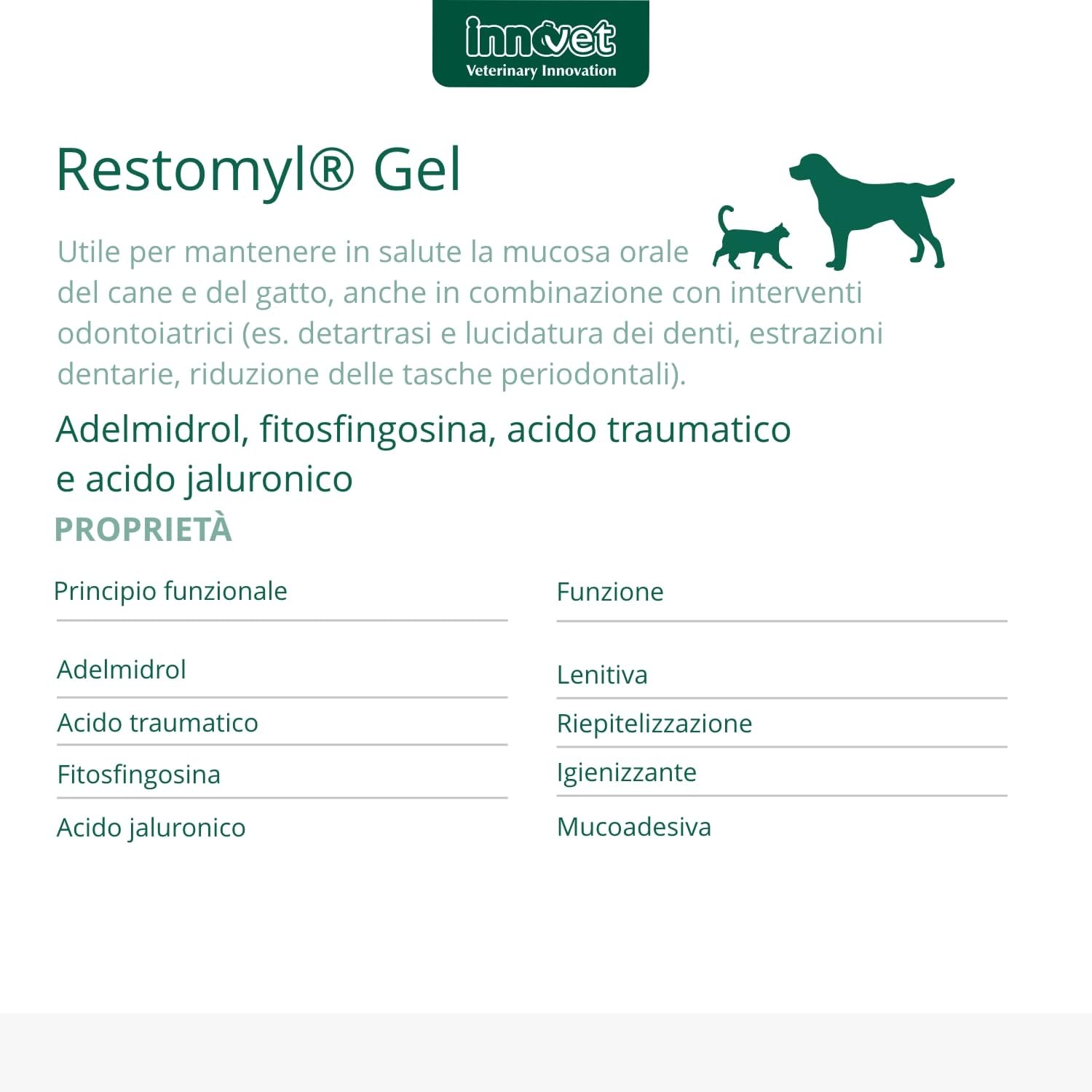Innovet Restomyl Gel Cani e Gatti ripristina in physiologischer Maniera die integrità della orale Muhaut.
