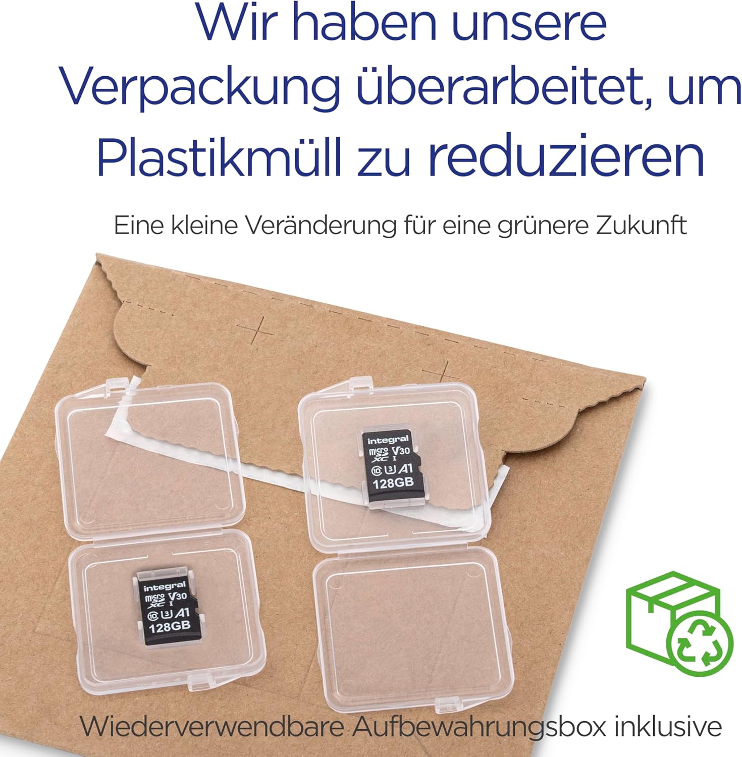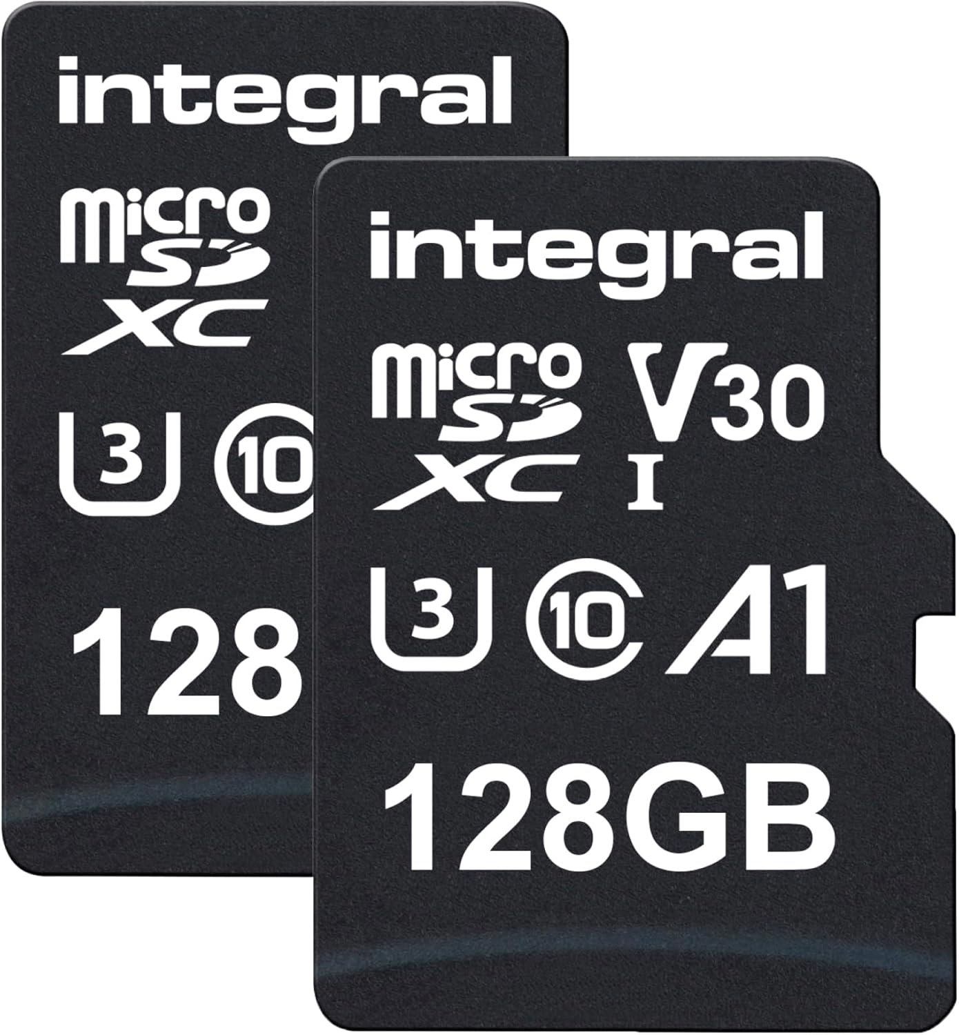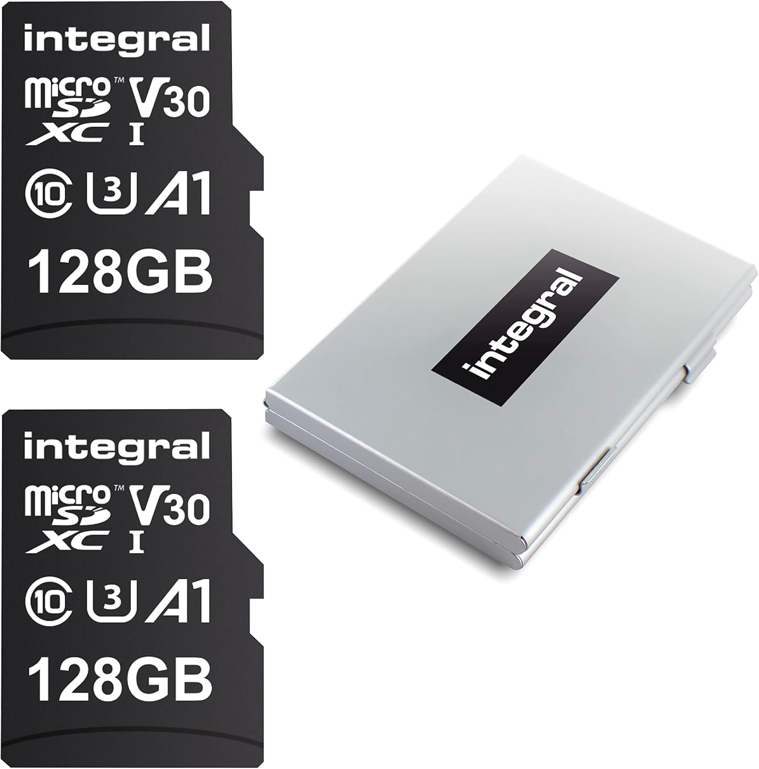 Интегрални двойни MicroSD карти 128GB, първокласна високоскоростна, 4K видео, 100MB/s четене, 50MB/s запис, UHS-I, U3, V30, клас 10, A1 - за смартфони, таблети, дронове, игрови конзоли