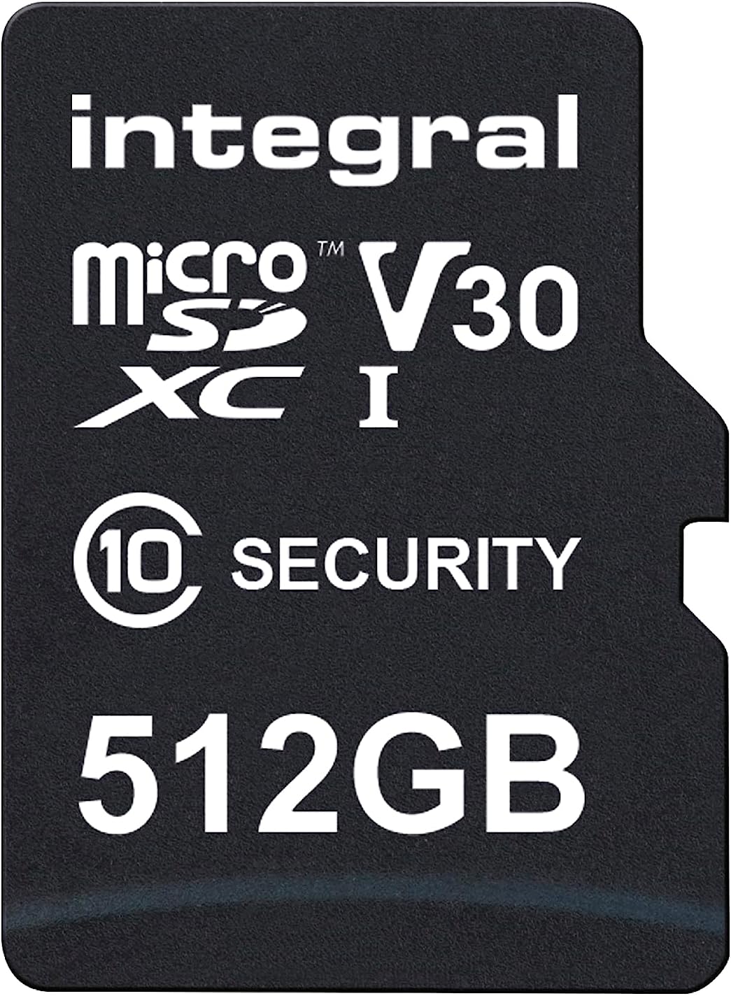 Интегрирана Micro SD карта за сигурност 512 GB за видеорегистратори, домашни камери, видеонаблюдение, телесни камери и дронове. Удължен живот и надеждно време за запис с висока издръжливост.