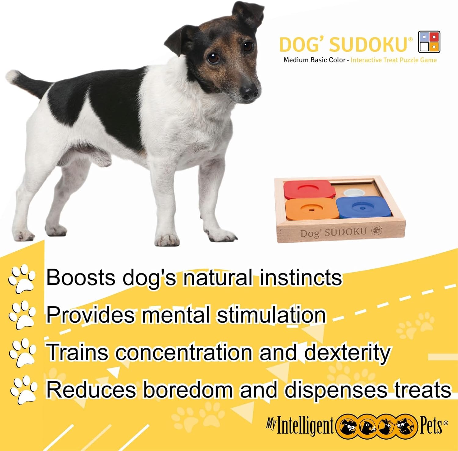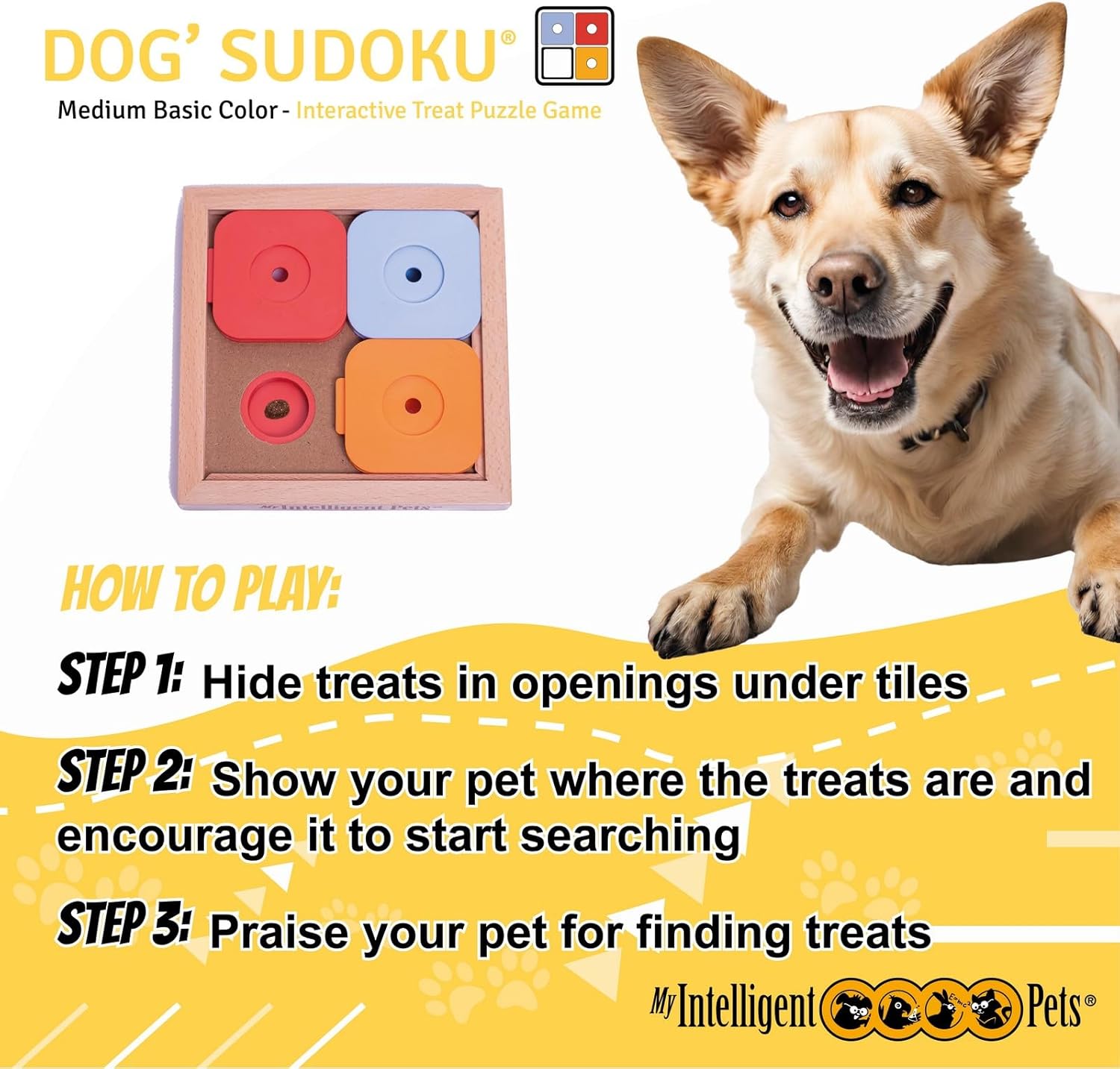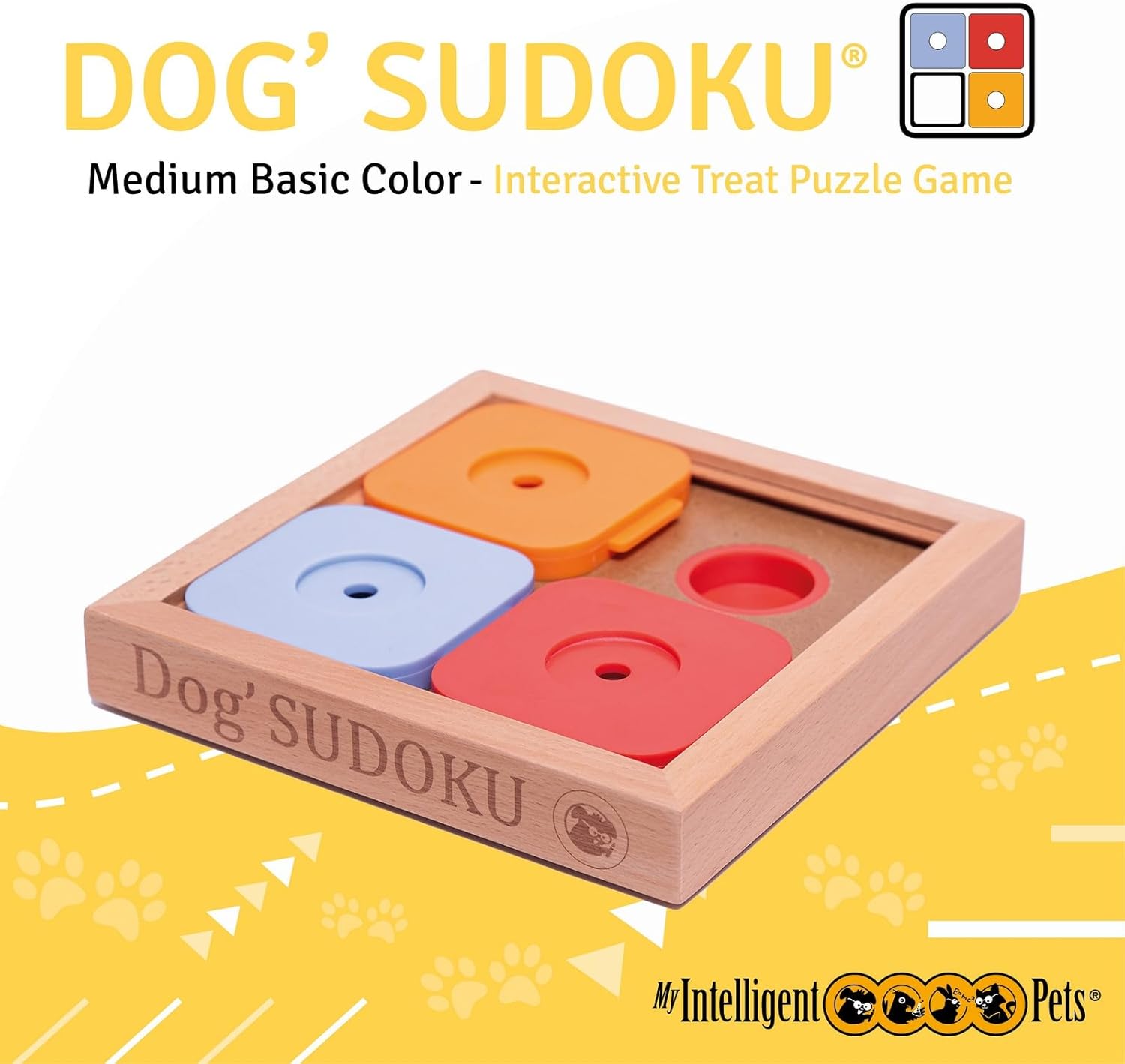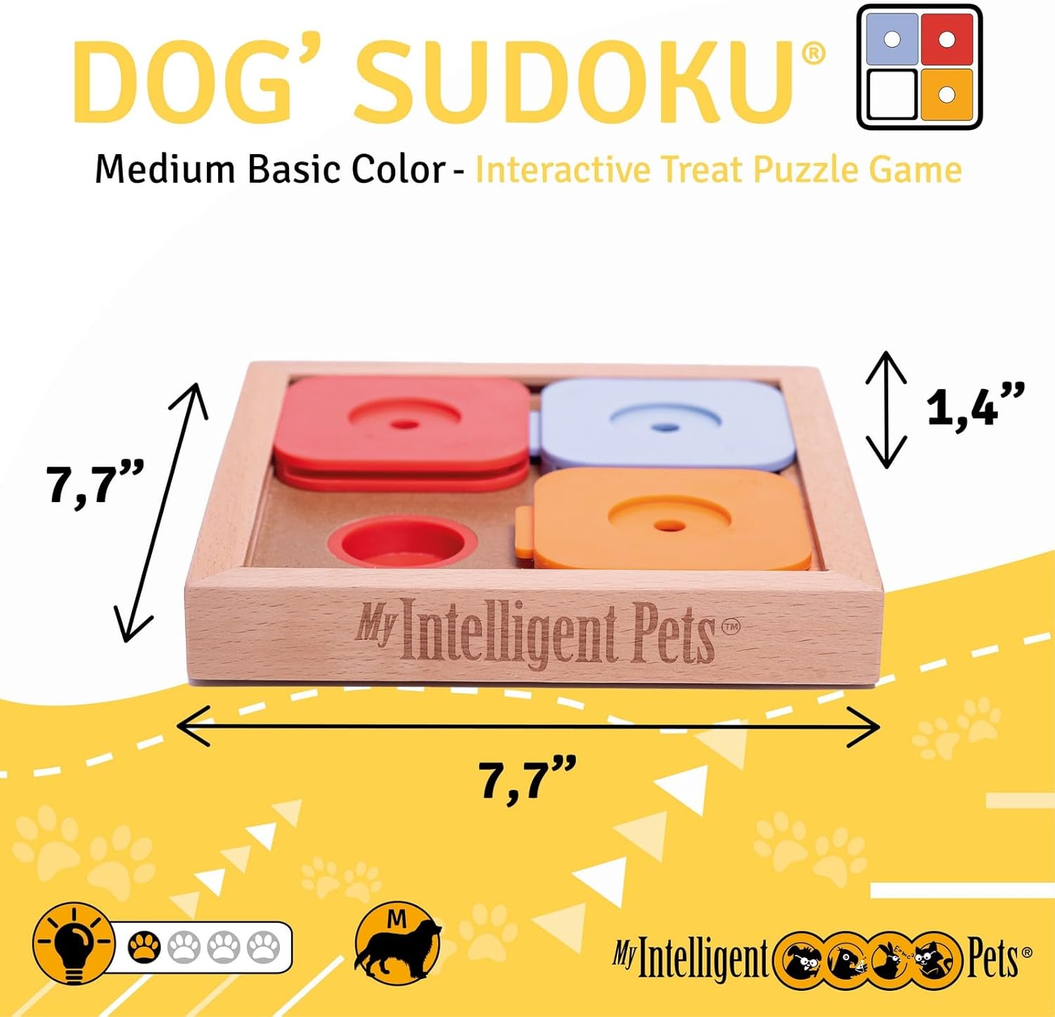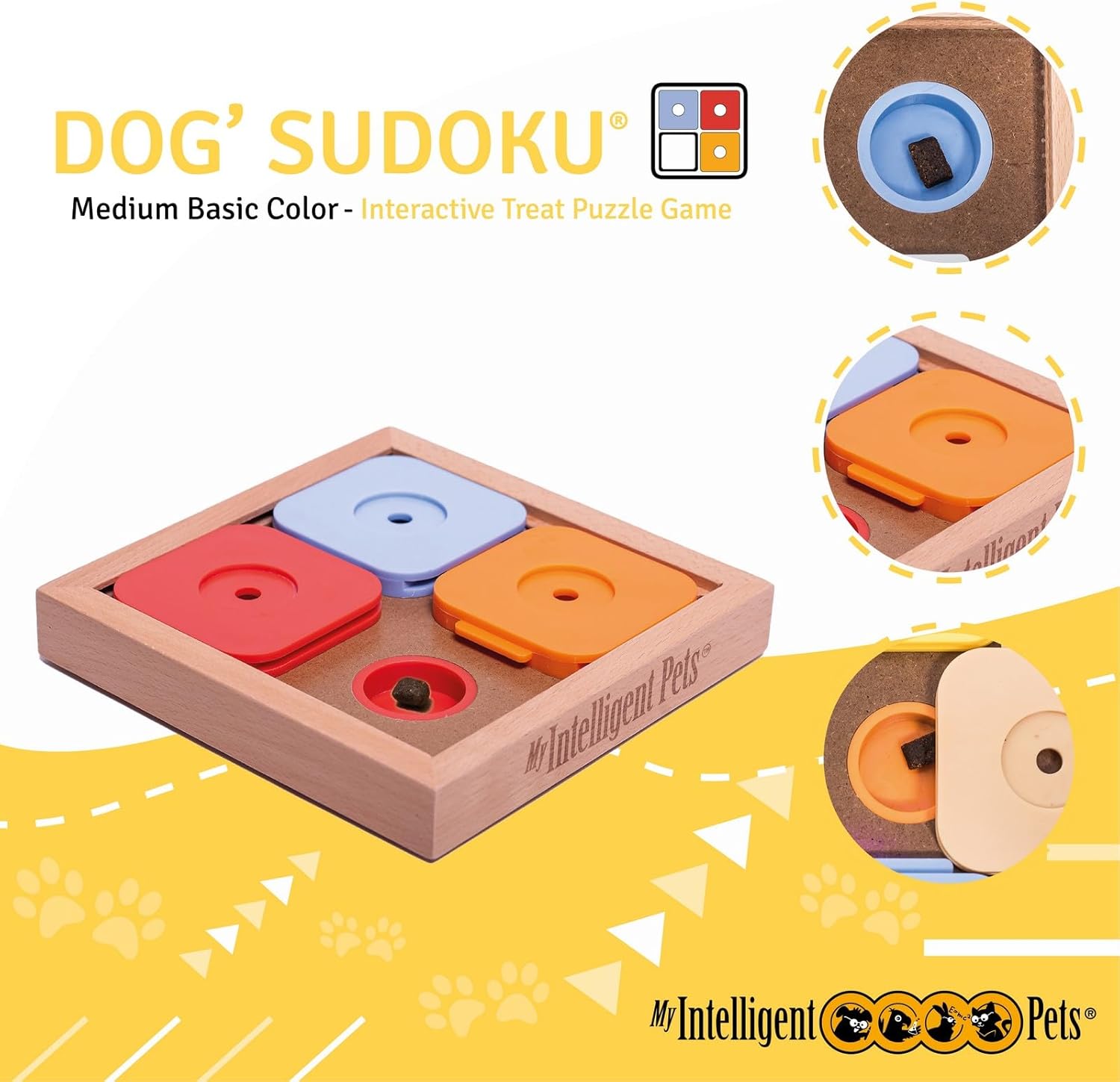 Интерактивна дървена играчка за кучета и котки My Intelligent Pets Dog Sudoku Medium Basic Color, за малки и големи кучета