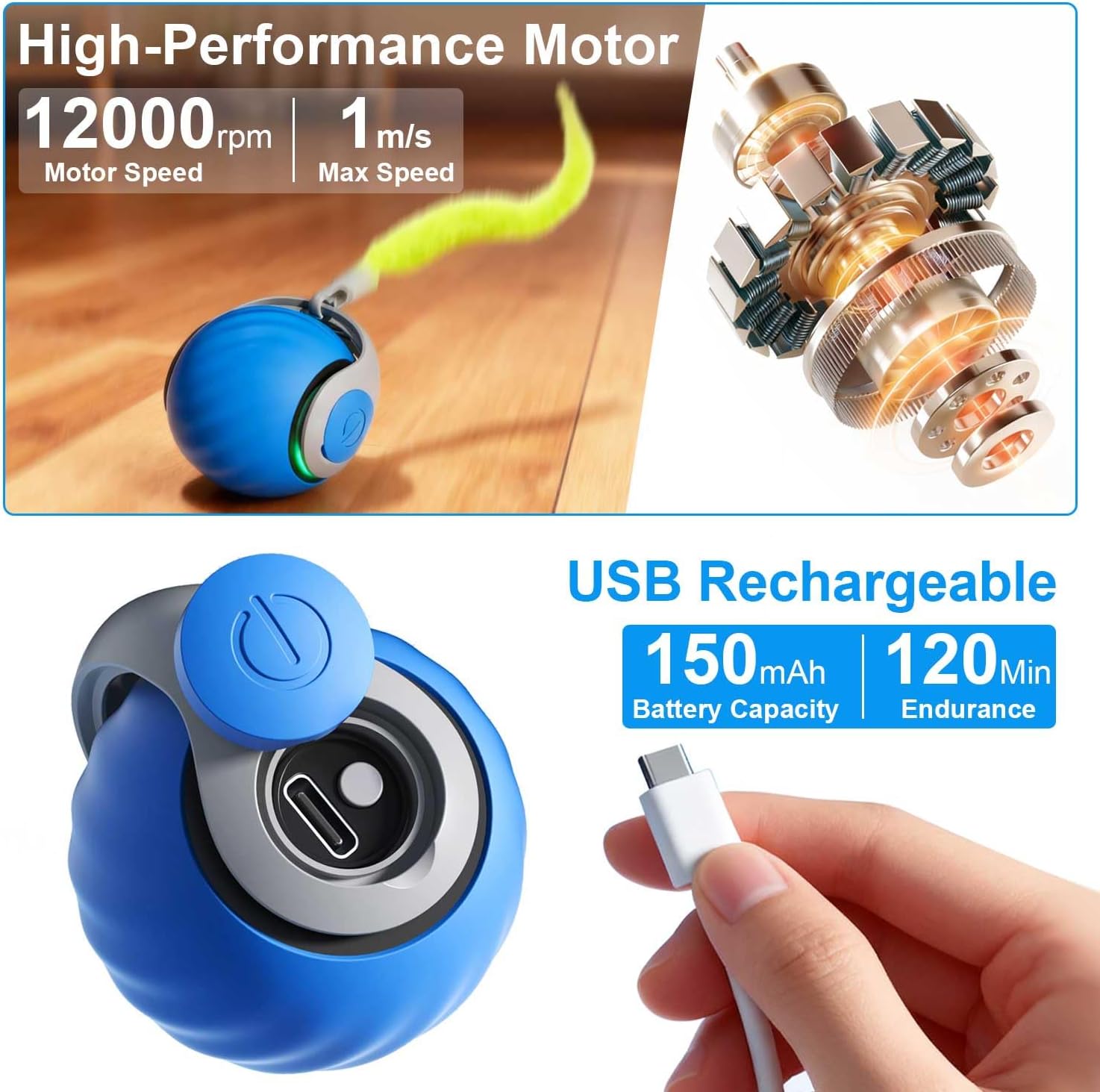 Тази играчка за котки с перната опашка мигновено събужда естественото любопитство и инстинкта за игра на вашата котка, като се търкаля произволно. Тя поддържа вашия срамежлив най-добър приятел активен и зает през целия ден и му осигурява много упражнения, за да остане здрав и във форма. Това е чудесен интерактивен подарък за домашни котки.