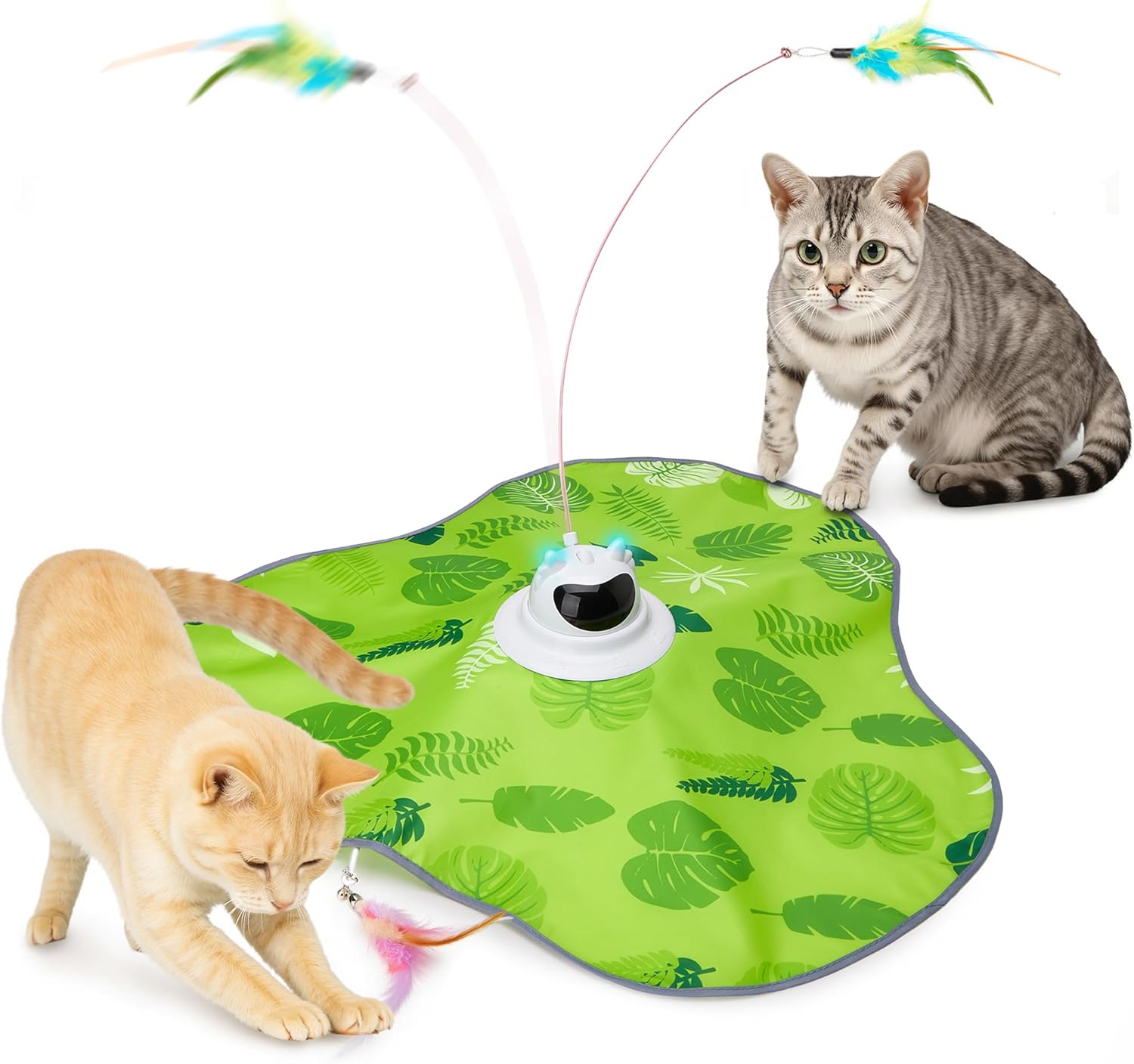 • Интерактивна играчка за котки 2 в 1: Тази интерактивна играчка за котки осигурява неограничено забавление, независимо дали котката ви умело гони отгоре, размахвайки пера, или любопитно се промъква за движещото се перо под плата. Перфектна е като самостоятелна играчка за домакинства с няколко котки: всяка котка ще намери свой собствен стил на игра, а играчките за котки никога няма да омръзнат.