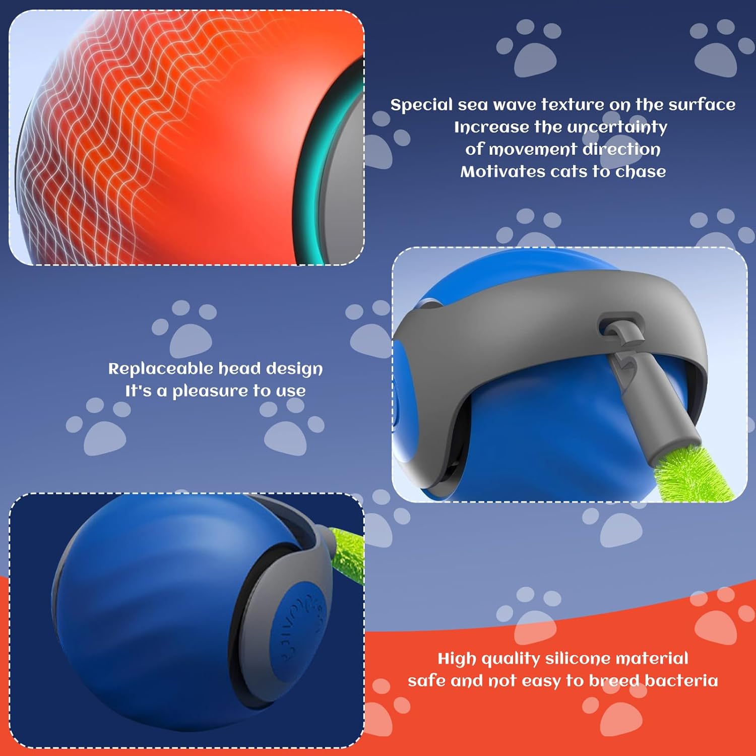 • Текстурирана сферична повърхност, непредсказуемо движение: Тази подвижна топка има уникална вълнообразна текстура, която непредсказуемо променя посоката си, събужда любопитството на вашата котка и я държи заета с играта за дълго време.