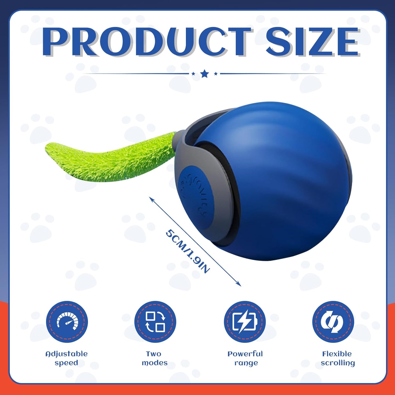 Интерактивна топка за игра за котки, 2.0 Autoecho играчка за котки, електрическа, играчка за котки, самостоятелна, два режима на регулиране, презареждаща се с USB, със сменяема опашка за кучета/котки (синя + червена)