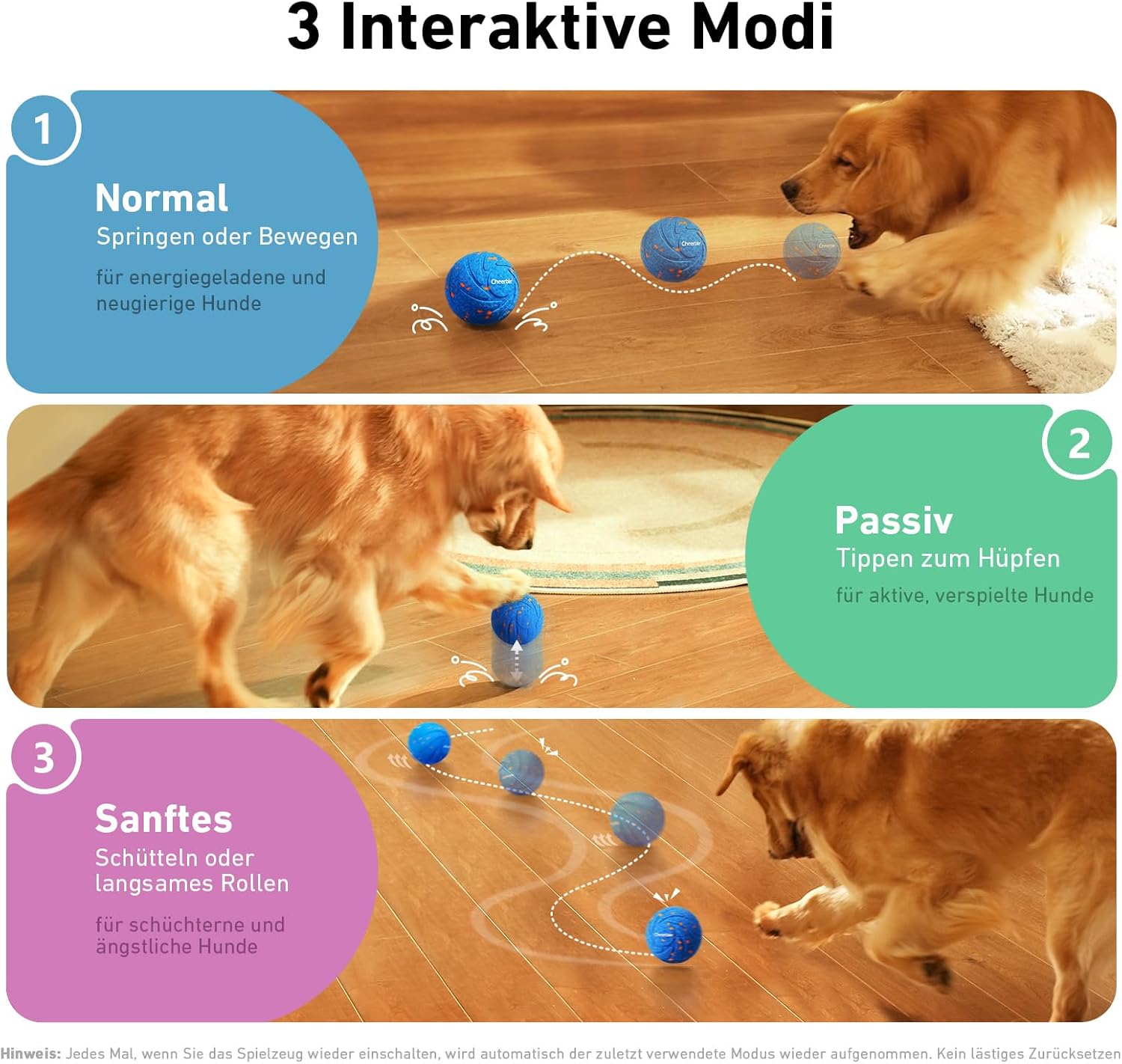 • 3 интерактивни режима Можете лесно да превключвате между режими (Нормален, Пасивен, Нежен), за да регулирате стила на игра и нивото на енергия на вашето куче. Тази играчка осигурява умствена стимулация и безкрайно забавление, идеална за това кучето ви да е щастливо и забавлявано.