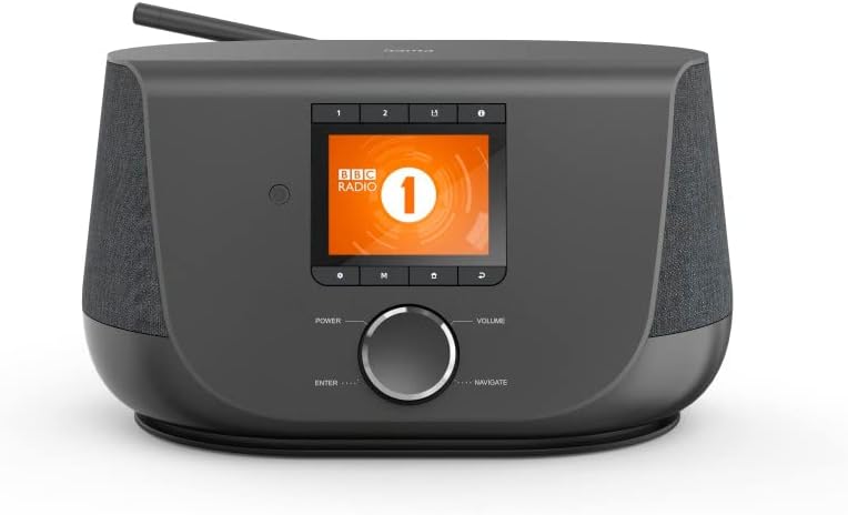 Интернет радио Hama с цифрово радио приемане и функция за зареждане на мобилен телефон, смарт радио DIR3300SBT (WLAN/DAB/DAB+/FM, Bluetooth/Spotify стрийминг, бутони за станции, радиобудилник, приложение UNDOK)