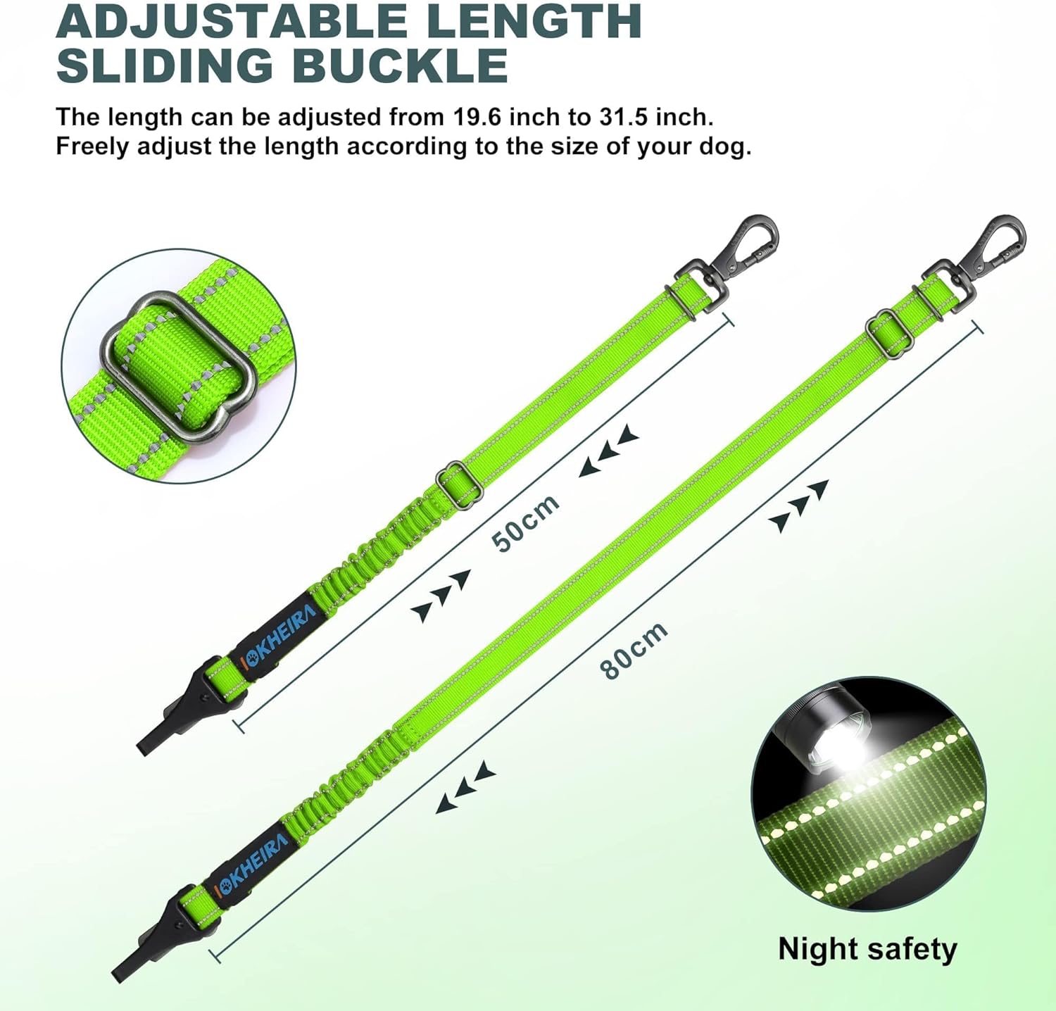 • Регулируема дължина и карабинер, въртящ се на 360°: Поводът за кучета е с регулируема дължина от 49,5 – 80 см (19,6 – 31,5 инча) и е широк 2,5 см. Вашето куче има достатъчна свобода на движение благодарение на регулируемия повод и въртящата се на 360 градуса карабинер, изработена от лек материал с двойна предпазна кука, която предлага достатъчна свобода за кучетата.