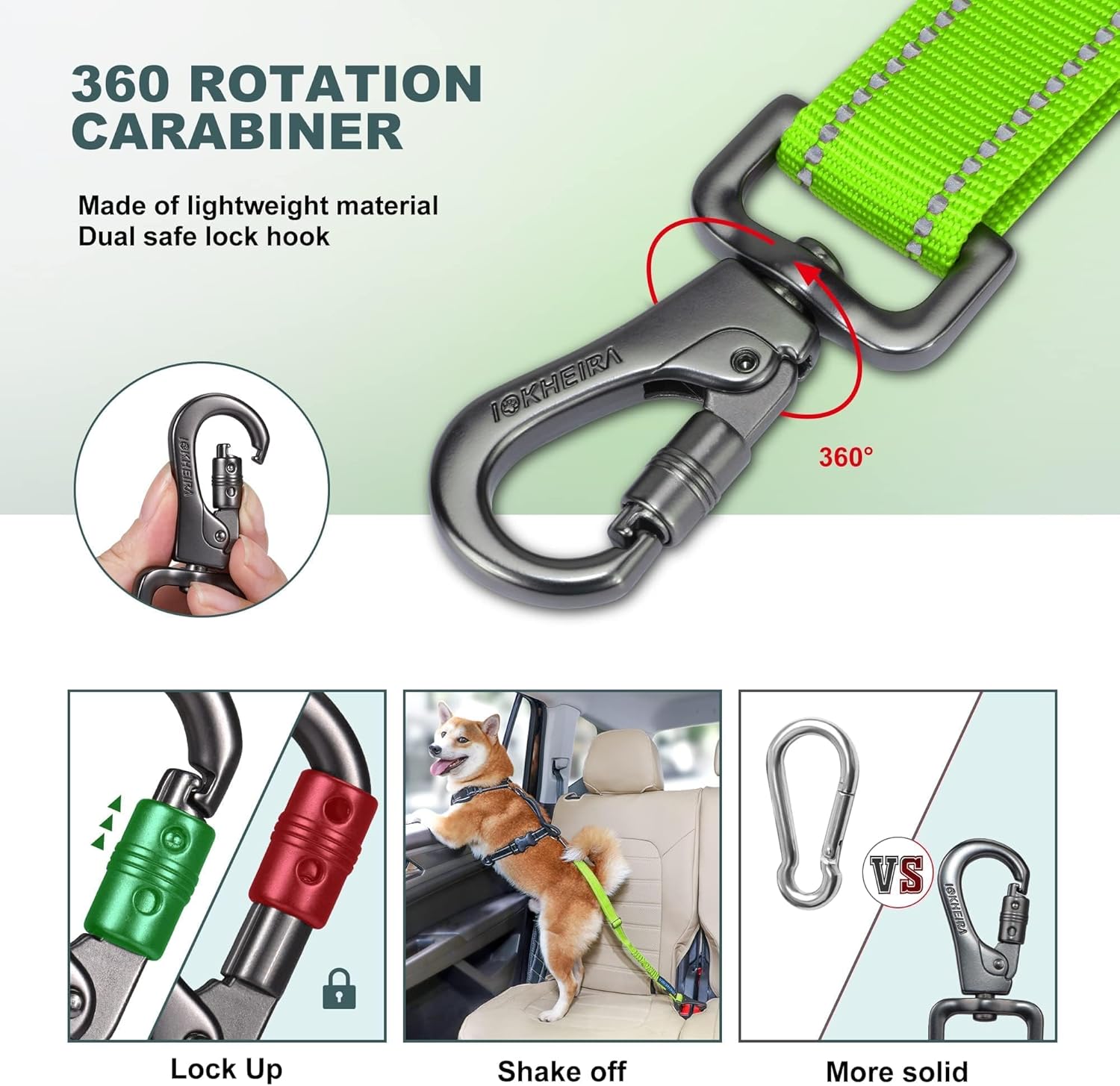 • Максимална безопасност и светлоотразителна функция: Изработена от ултраздрав найлон и здрави метални части. В случай на рязко потрепване поради удар, еластичният елемент в каишката предотвратява наранявания на вашия любимец, а товарът е нежно омекотен, за да защити безопасността на вашите кучета. Светлоотразителната каишка може да направи кучетата ви видими през нощта.