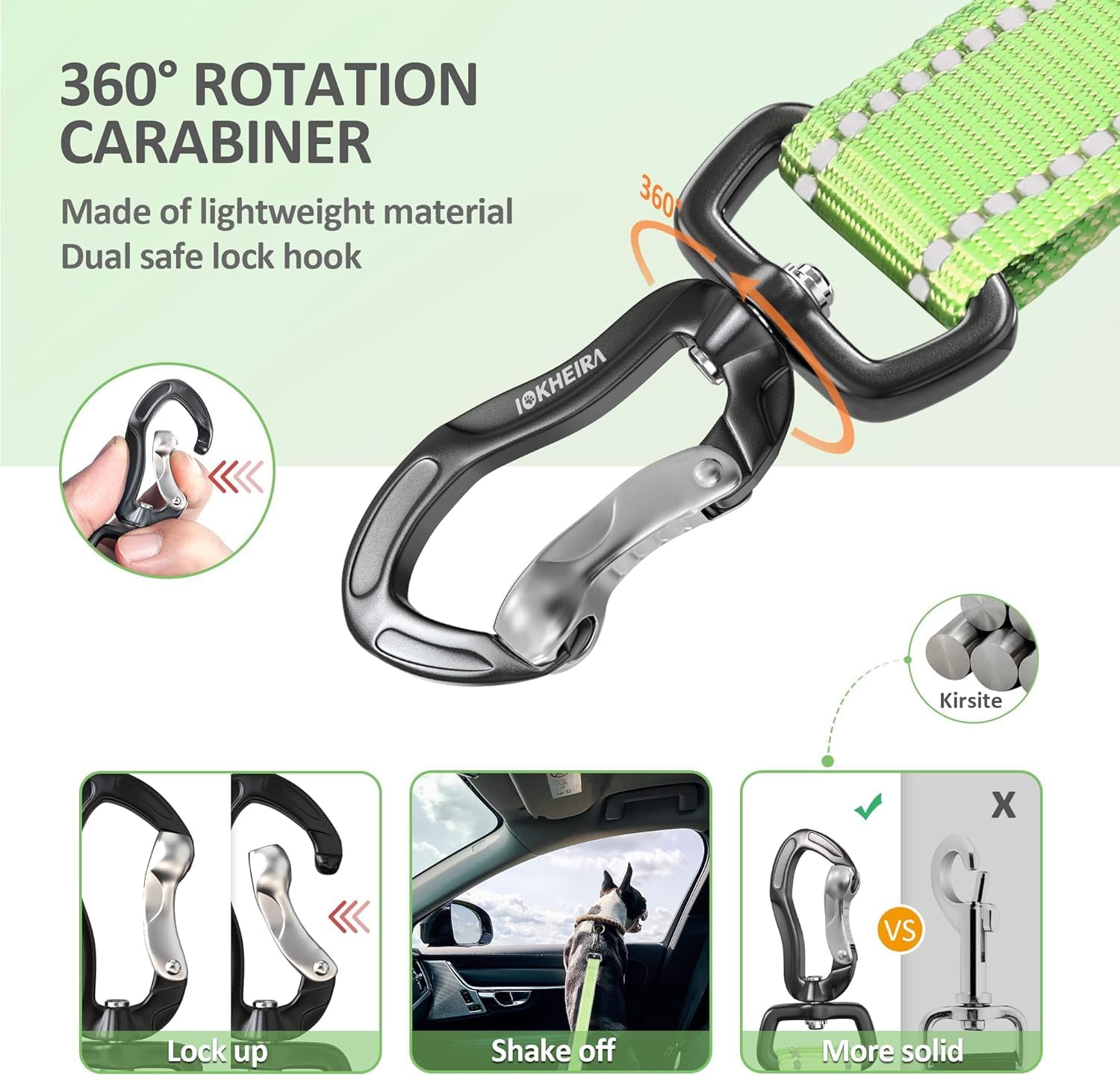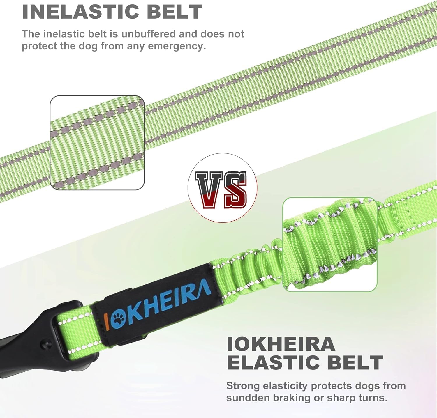 • Дизайн с еластичен буфер: благодарение на еластичната конструкция на буфера, предпазният колан за кучета IOKHEIRA може да предпази кучетата от внезапно спиране или остри завои и да предотврати разсейване на водача по време на шофиране.