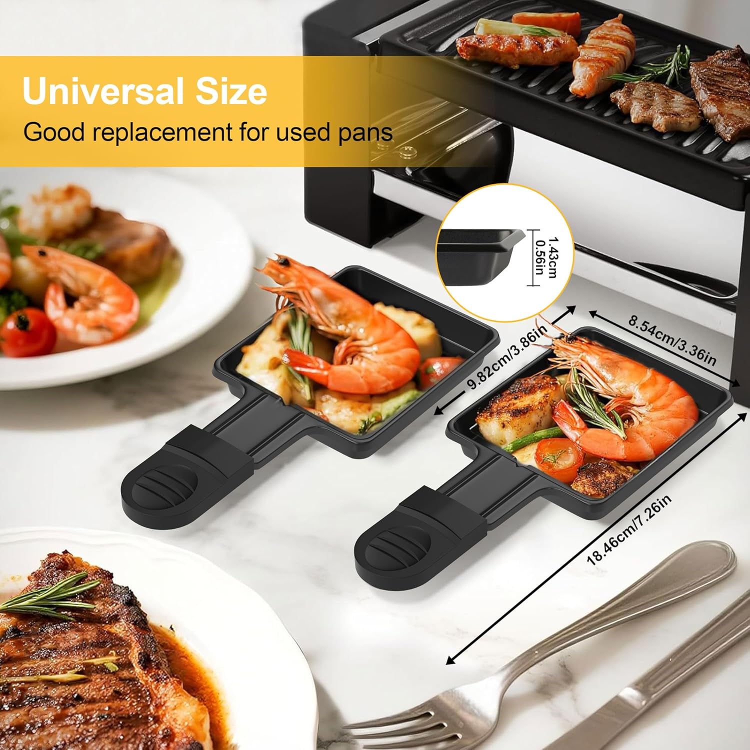 • Стандартни резервни части: 8 броя ipow раклет чайници (18,46 x 8,54 x 1,43 см) с универсален размер, съвместими с повечето раклет устройства с тиган - перфектна резервна кана за вашите стари, износени чайници.