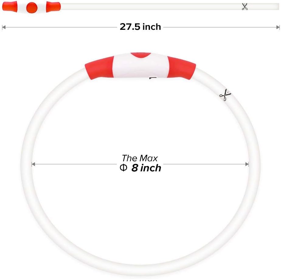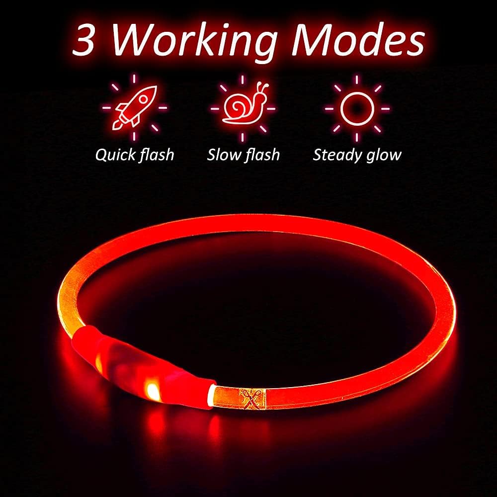 iTayga Светещ нашийник за кучета, USB презареждащ се и водоустойчив, регулируема дължина, предпазен нашийник за кучета и котки, 3 режима, червен