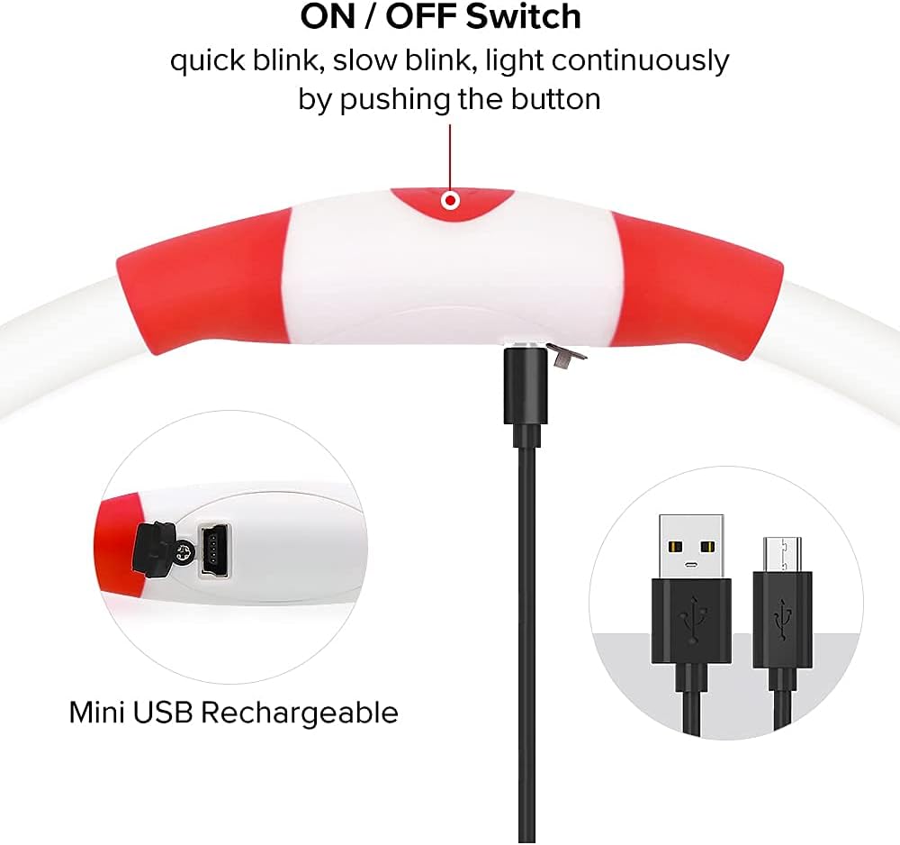 • 【Лесен за употреба и почистване】С едно щракване можете да превключвате между бързо мигане, бавно мигане, постоянно мигане и изключено. Този нашийник е толкова лесен за почистване, че можете да го направите чист и нов, като го избършете бързо.