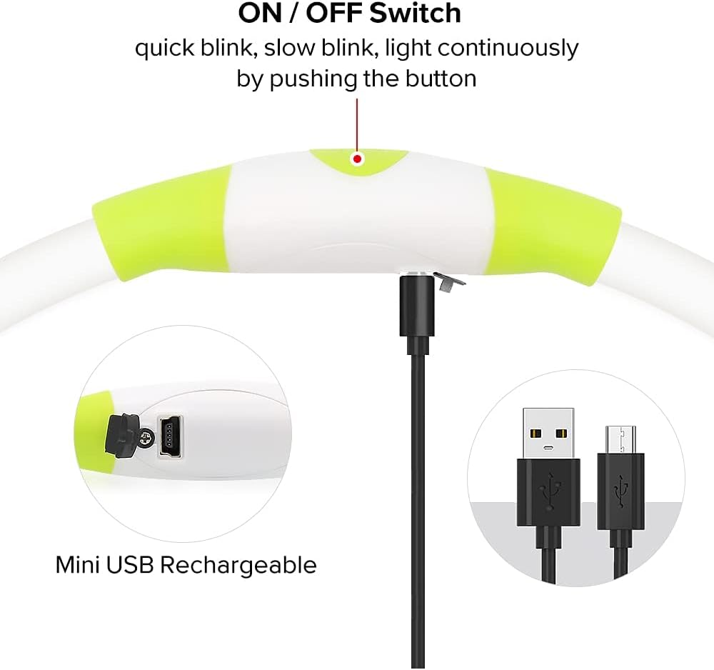 • 【НАПРАВЕТЕ ГО БЕЗОПАСНО】 Светещият нашийник прави кучето ви видимо на 360°, когато се разхождате в тъмното. Така водачът може да види кучето ви отдалеч. Сутрин и вечер, когато се разхождате, тичате, джогирате или се разхождате с кучето си, това може да направи кучето ви безопасно и видимо.