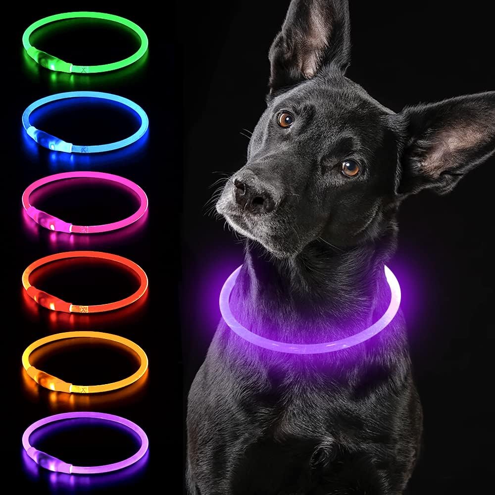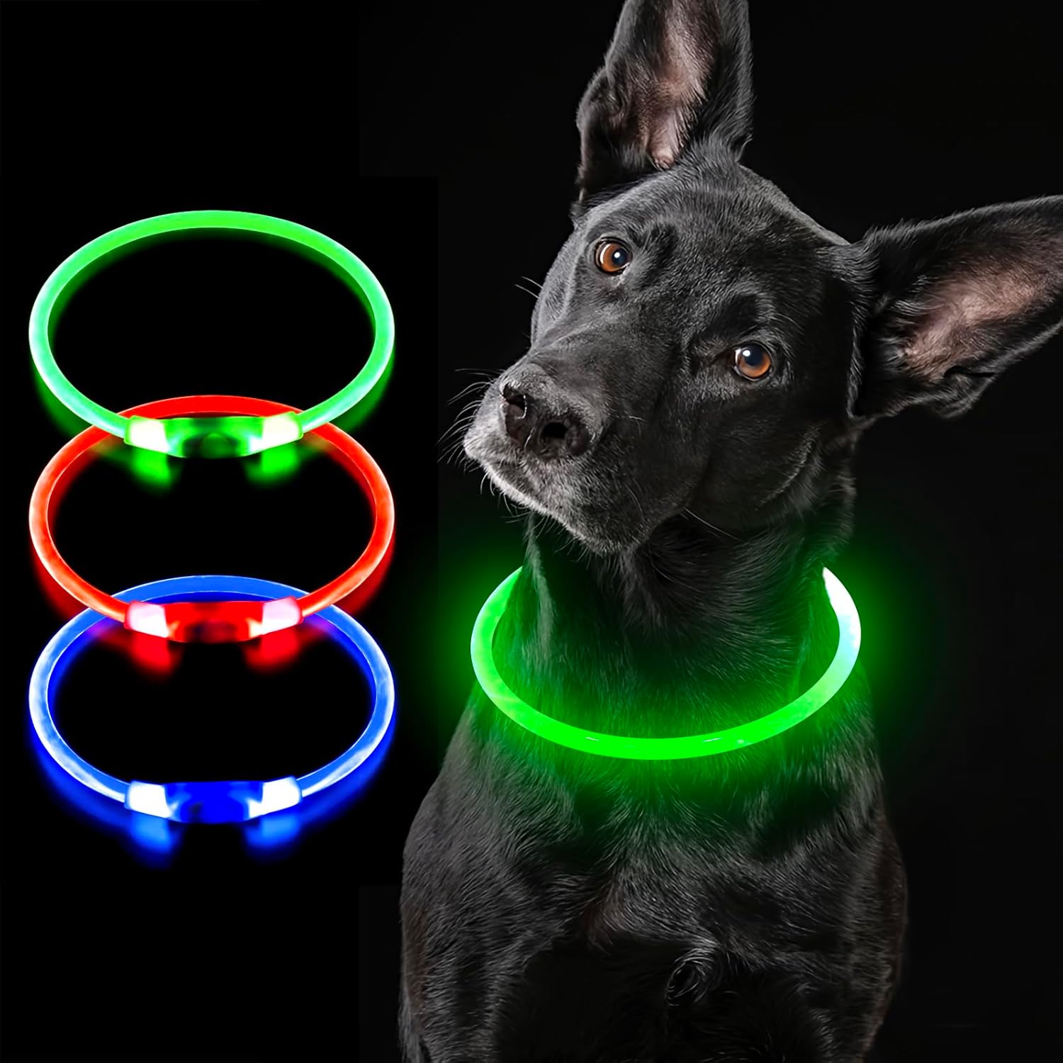 iTayga Светещ нашийник за кучета, USB презареждащ се и водоустойчив, регулируема дължина, предпазен нашийник за кучета и котки, 3 режима, зелен