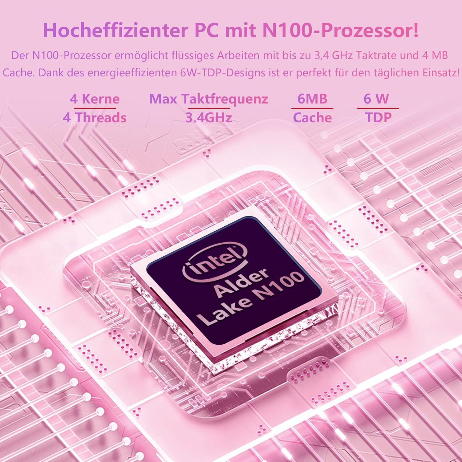 • Силна производителност на мощния Intel Celeron N100: Този компютър използва най-новия процесор Intel Celeron N100 от 12-то поколение с 4 ядра и 4 нишки и предлага висока скорост до 3,4 GHz. Независимо дали става въпрос за редактиране на документи или леки игри, той работи ефективно и без забавяне, което го прави идеален избор за плавна многозадачност.