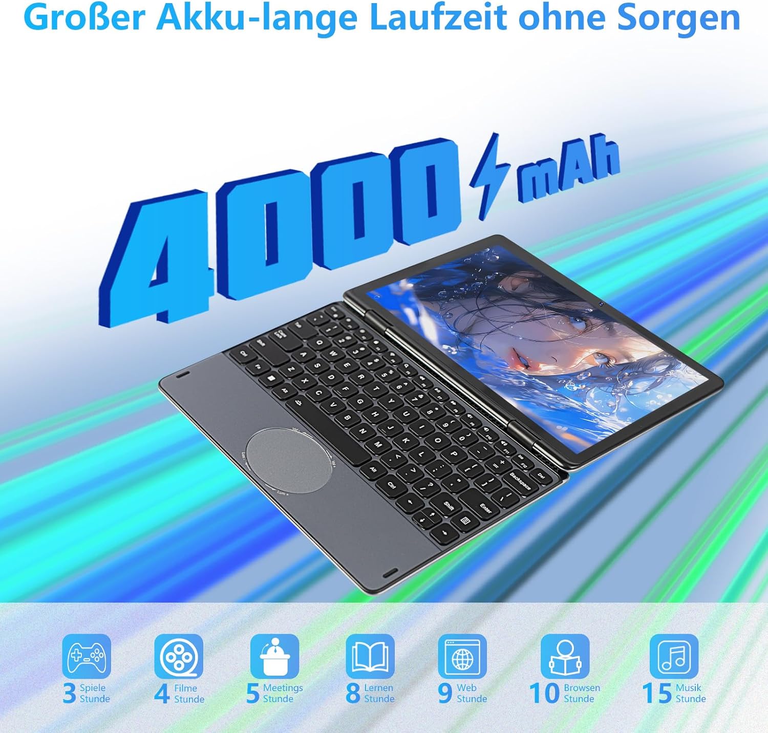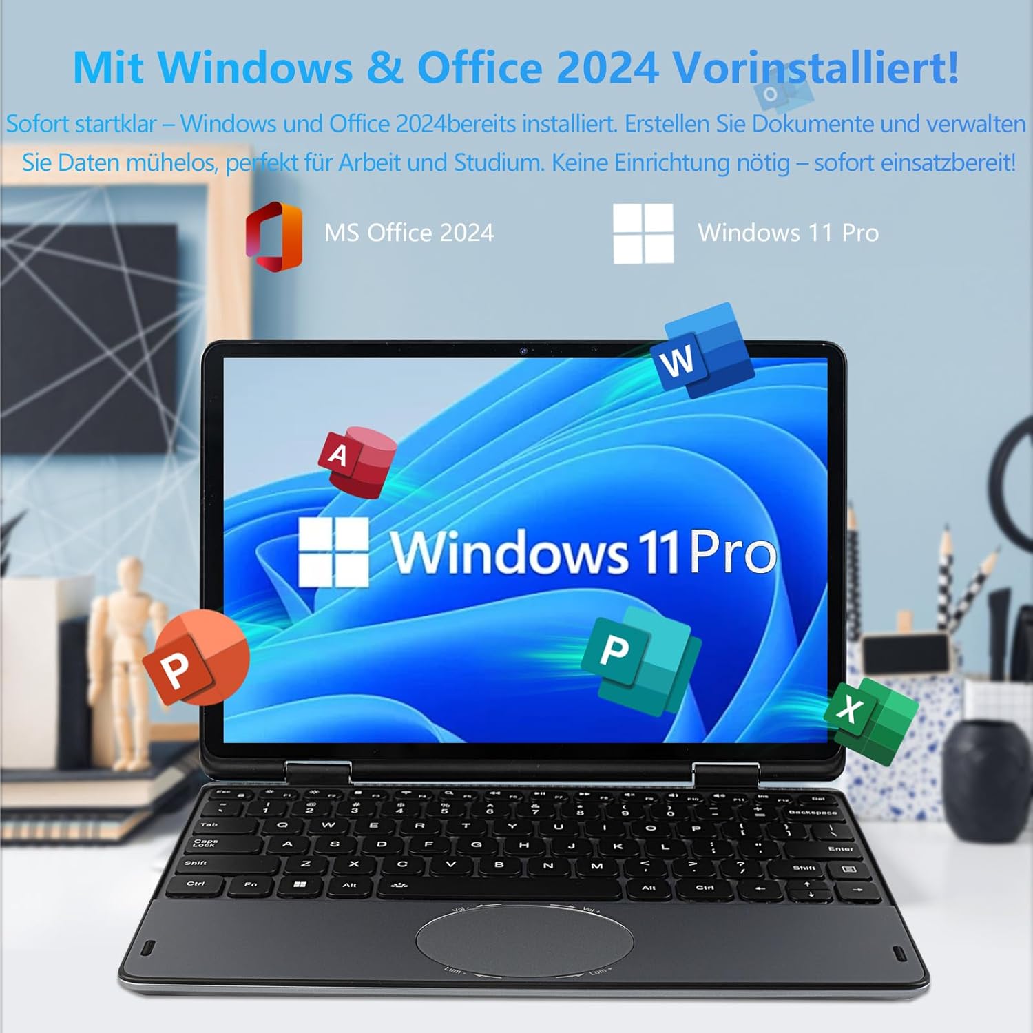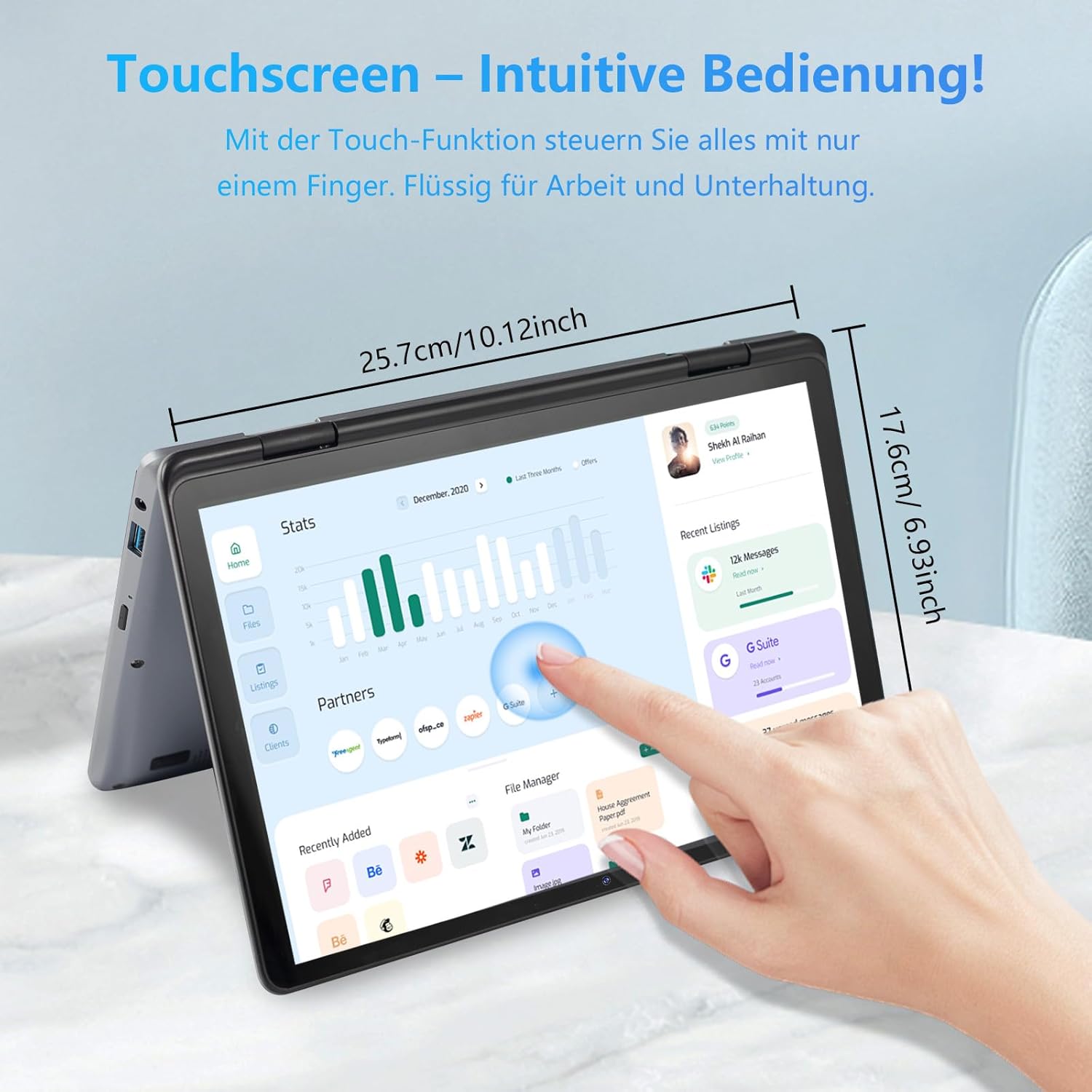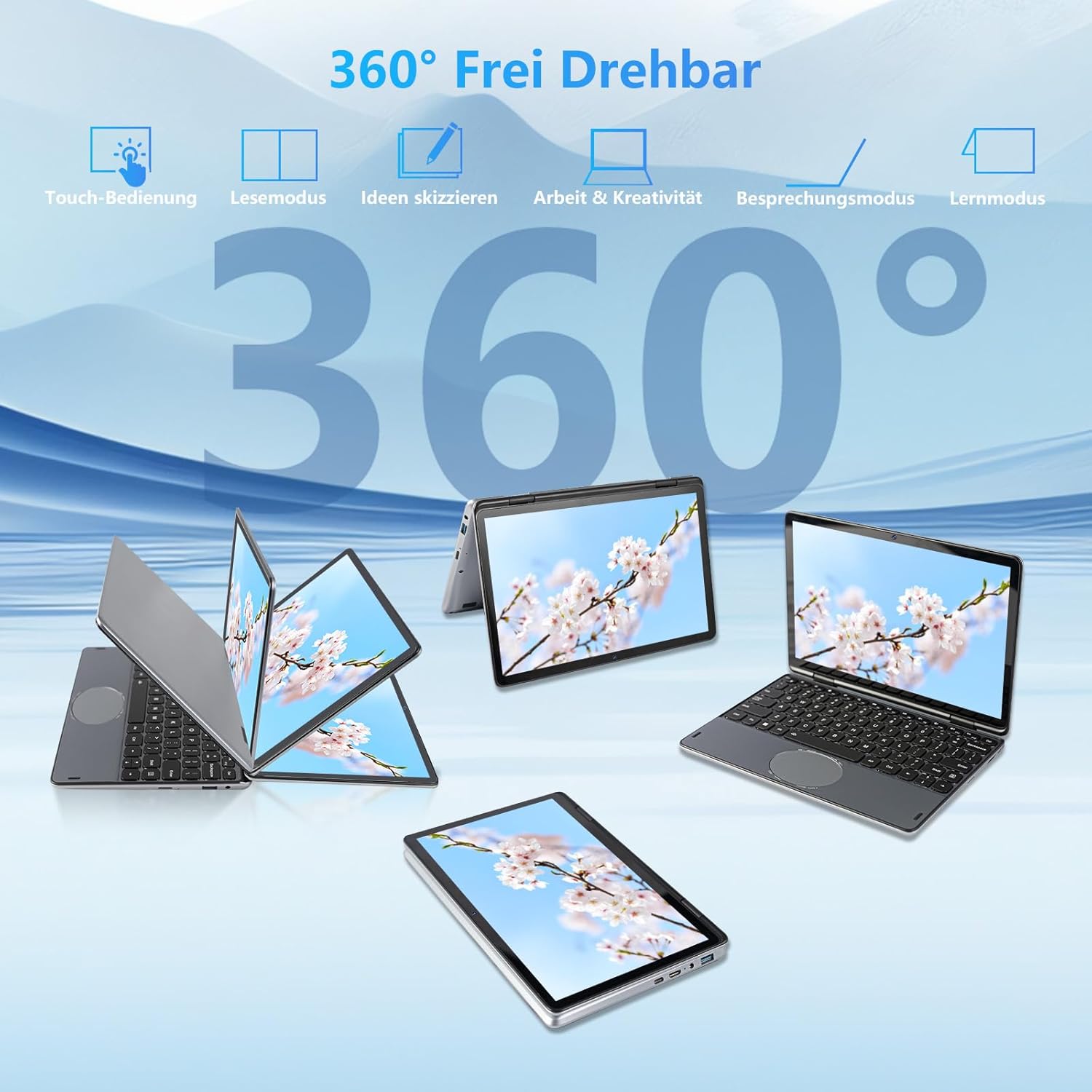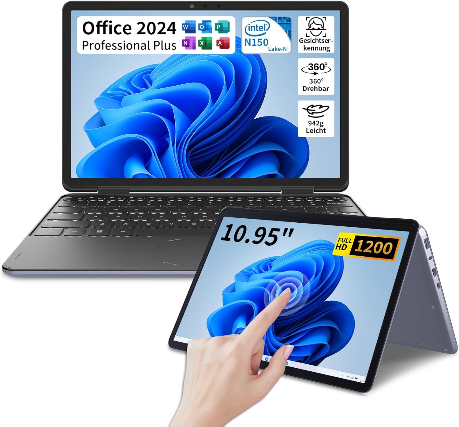IUGNG 10.95-инчов 2-в-1 лаптоп с тъчскрийн, Yoga N150, въртящ се на 360°, 1920 x 1200 IPS, 16GB DDR4, 512GB SSD, клавиатура с подсветка (сив, 512)
