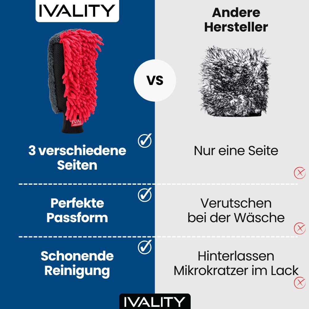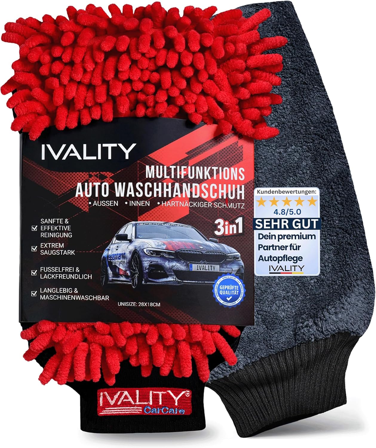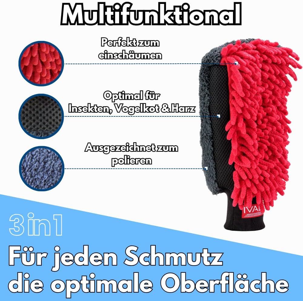 Ivality Premium 3-в-1 ръкавица за автомивка - микрофибърна ръкавица, нежна към боята и абсорбираща - гъба против надраскване с ластик за автомивка, почистваща джанти и премахваща насекоми