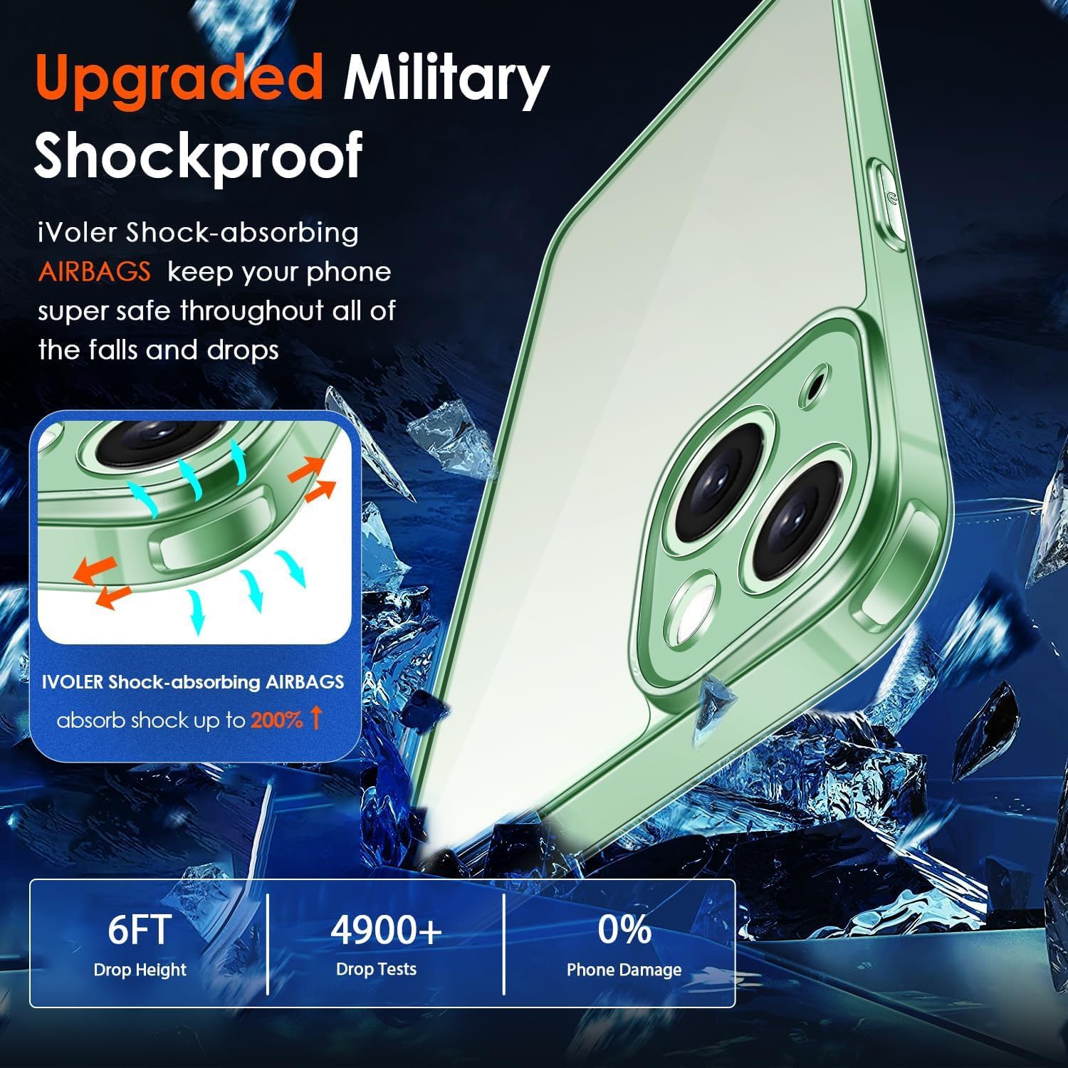 • Отлична защита от военно ниво: твърда PC задна плоча обгражда мека TPU броня с абсорбиращи ударите „въздушни възглавници“ в 4 ъгъла, които могат ефективно да абсорбират и разпределят 99,99% от удара при падане. Тестван да издържа на реални ситуации, включително тестове за падане от множество ъгли от 3 метра и екстремни надрасквания. Така телефонът ви е защитен от скъпи и досадни ремонти.