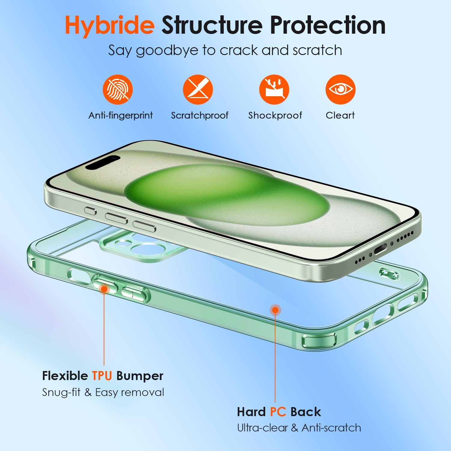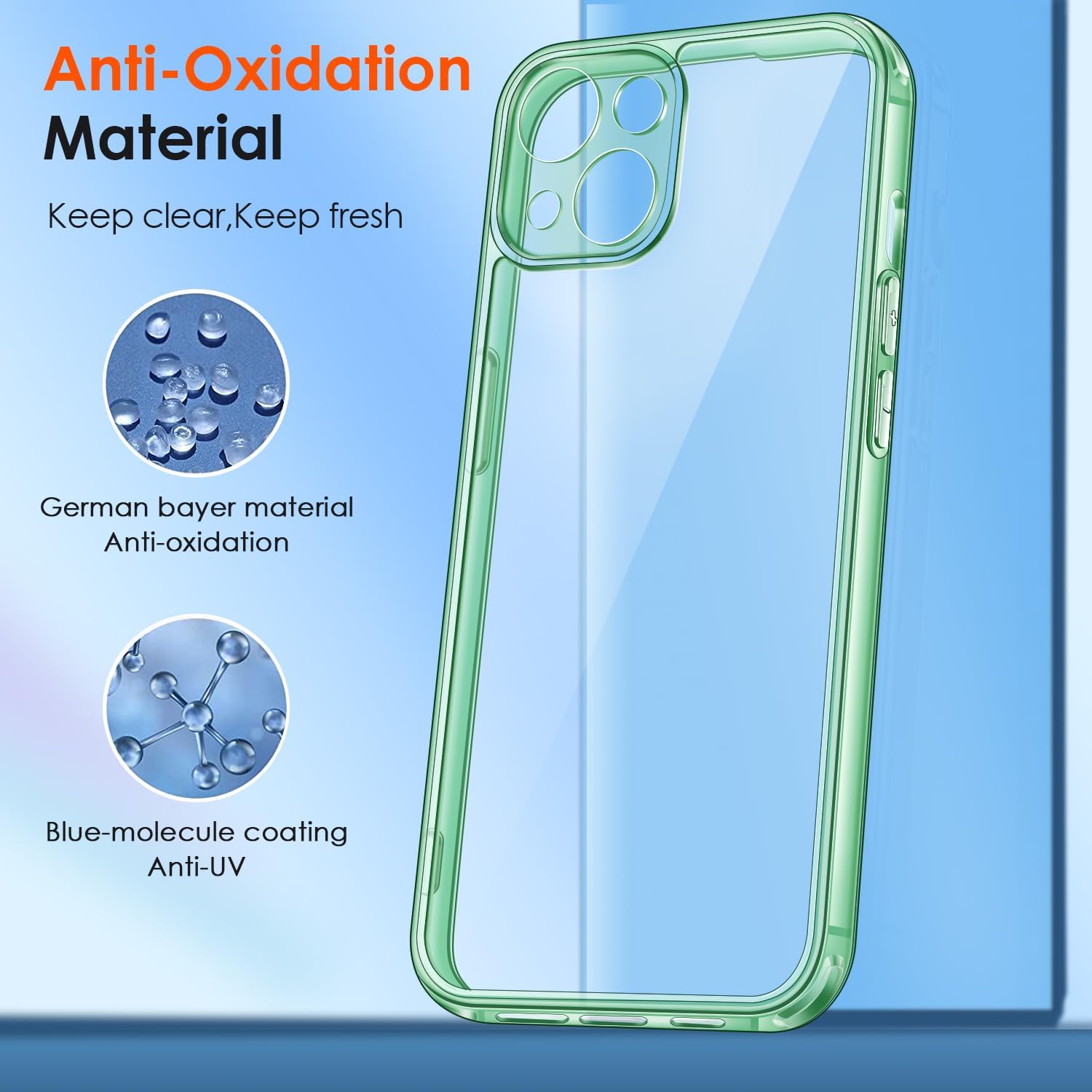 • Кристално чист и без пожълтяване: кристално прозрачният PC гръб остава без пожълтяване за по-дълго време. Използвайте ултрапрозрачния TPU материал от Германия, за да се насладите на оригиналната красота на вашия телефон. Нано антиоксидантният слой ефективно е устойчив на петна и пот, не се омазнява и не пожълтява лесно с времето, показвайки перфектно оригиналния цвят на вашия телефон.