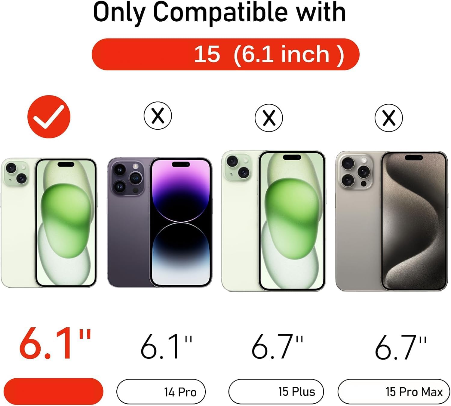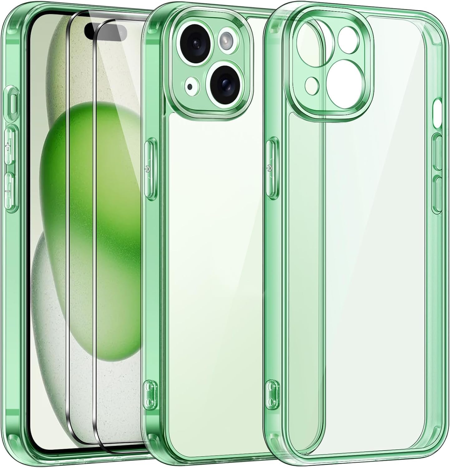 ivoler 3-в-1 калъф, съвместим с iPhone 15 6.1 инча, с 2 части закалено стъкло, никога не пожълтява, защита на камерата, тънък, прозрачен, удароустойчив, устойчив на надраскване калъф - ментово зелен