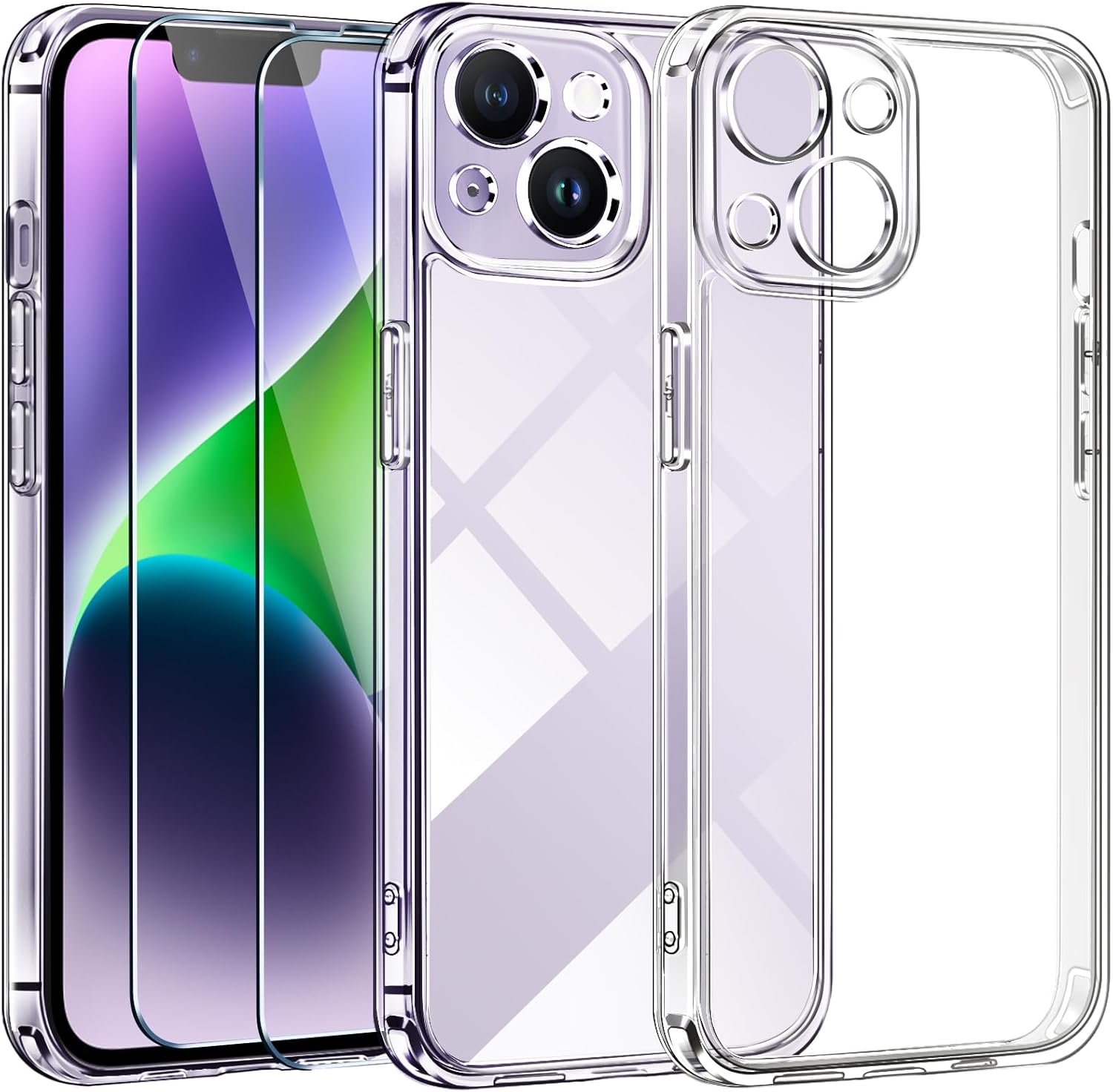 ivoler 3-в-1 калъф за iPhone 14 6.1 инча [Никога не пожълтява], 1 калъф за мобилен телефон с 2 части защита от закалено стъкло, военна защита, защита на камерата, тънък, прозрачен, удароустойчив,