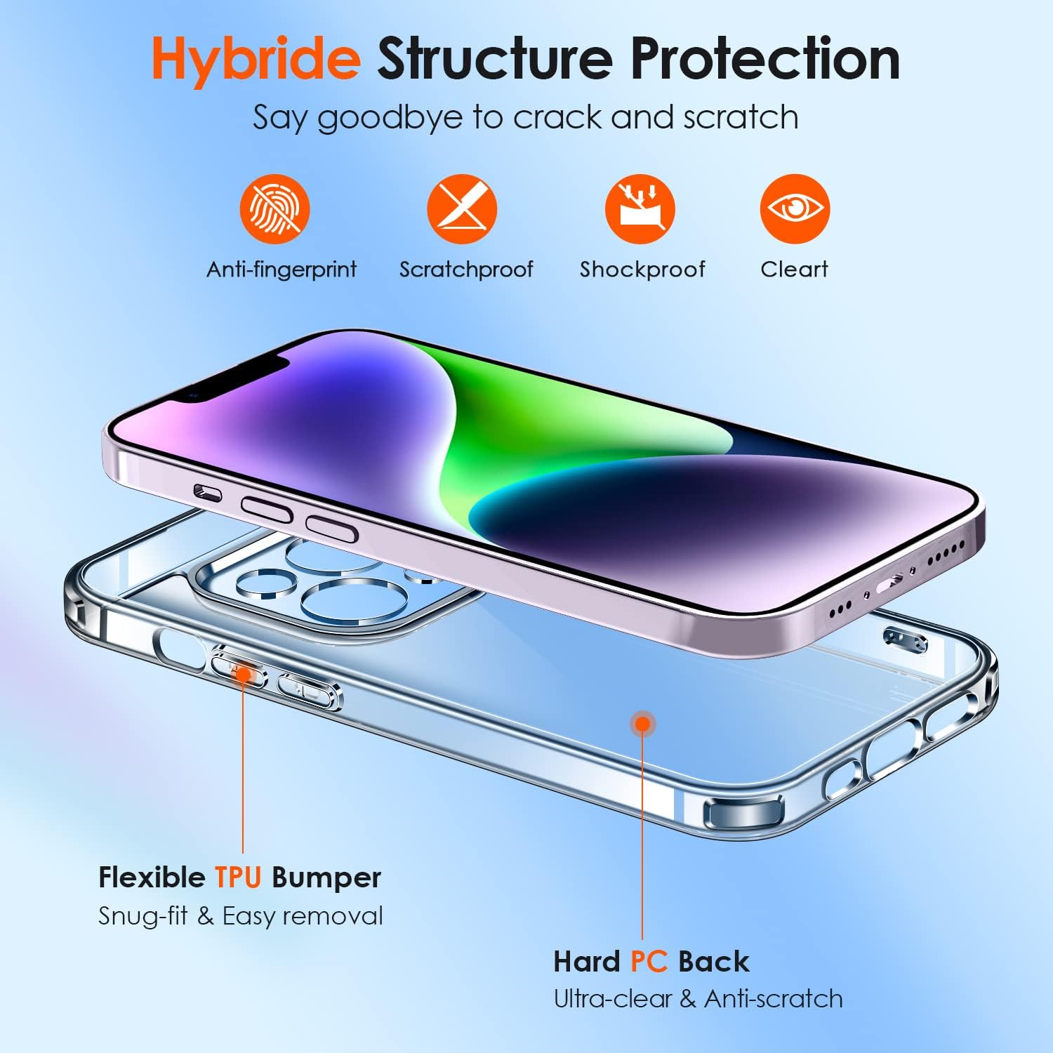 • Кристално чист и без пожълтяване: кристално прозрачният PC гръб остава без пожълтяване за по-дълго време. Използвайте ултрапрозрачния TPU материал от Германия, за да се насладите на оригиналната красота на вашия телефон. Нано антиоксидантният слой ефективно е устойчив на петна и пот, не се омазнява и не пожълтява лесно с времето, показвайки перфектно оригиналния цвят на вашия телефон.