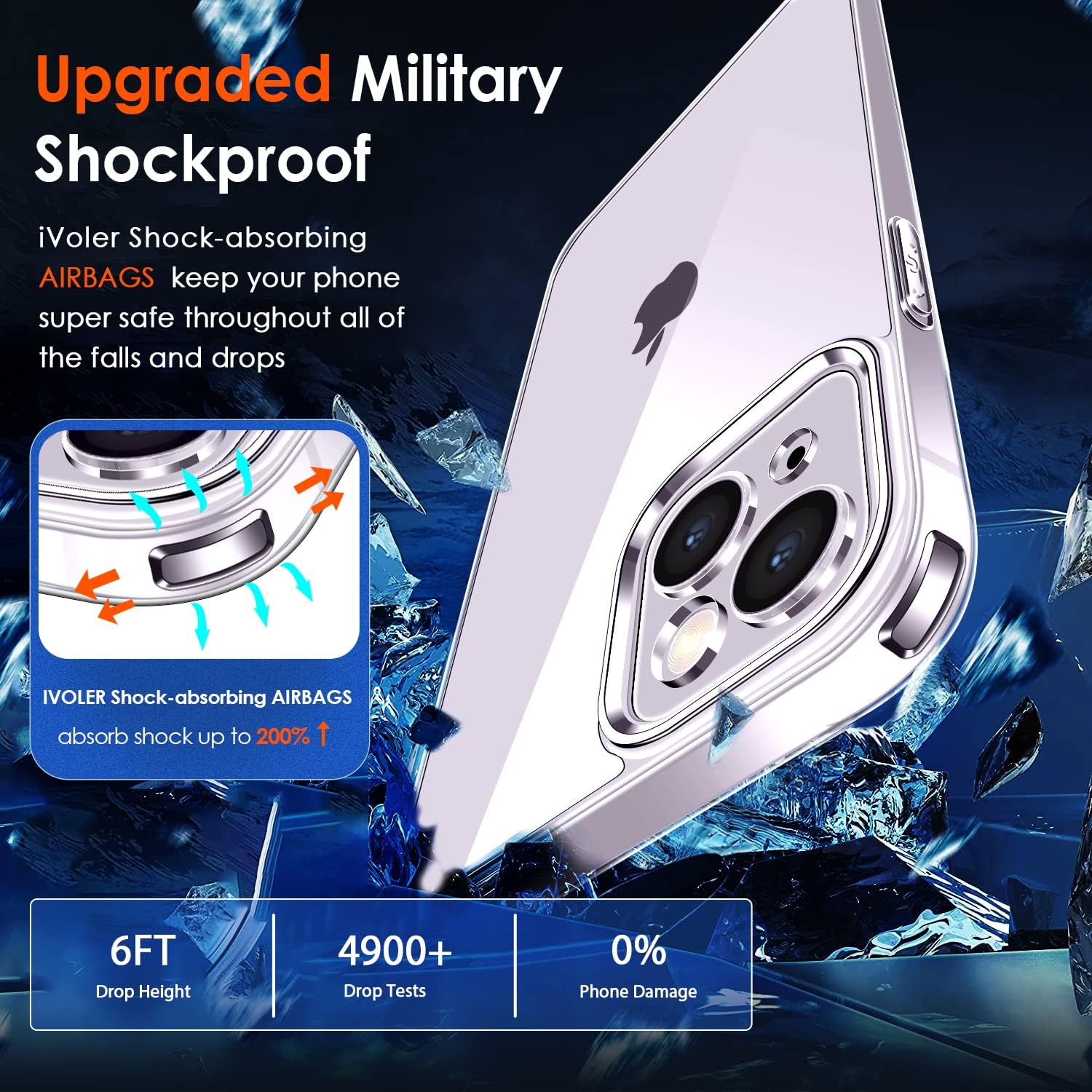 • Отлична защита от военно ниво: твърда PC задна плоча обгражда мека TPU броня с абсорбиращи ударите „въздушни възглавници“ в 4 ъгъла, които могат ефективно да абсорбират и разпределят 99,99% от удара при падане. Тестван да издържа на реални ситуации, включително тестове за падане от множество ъгли от 3 метра и екстремни надрасквания. Така телефонът ви е защитен от скъпи и досадни ремонти.