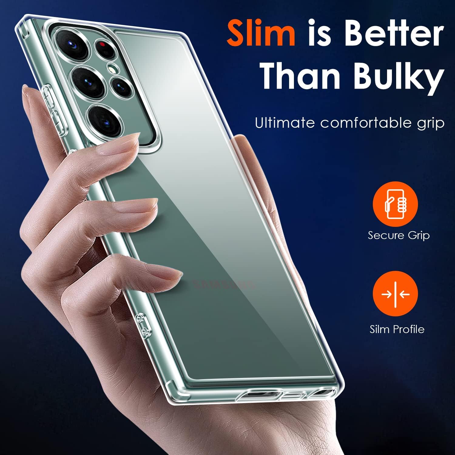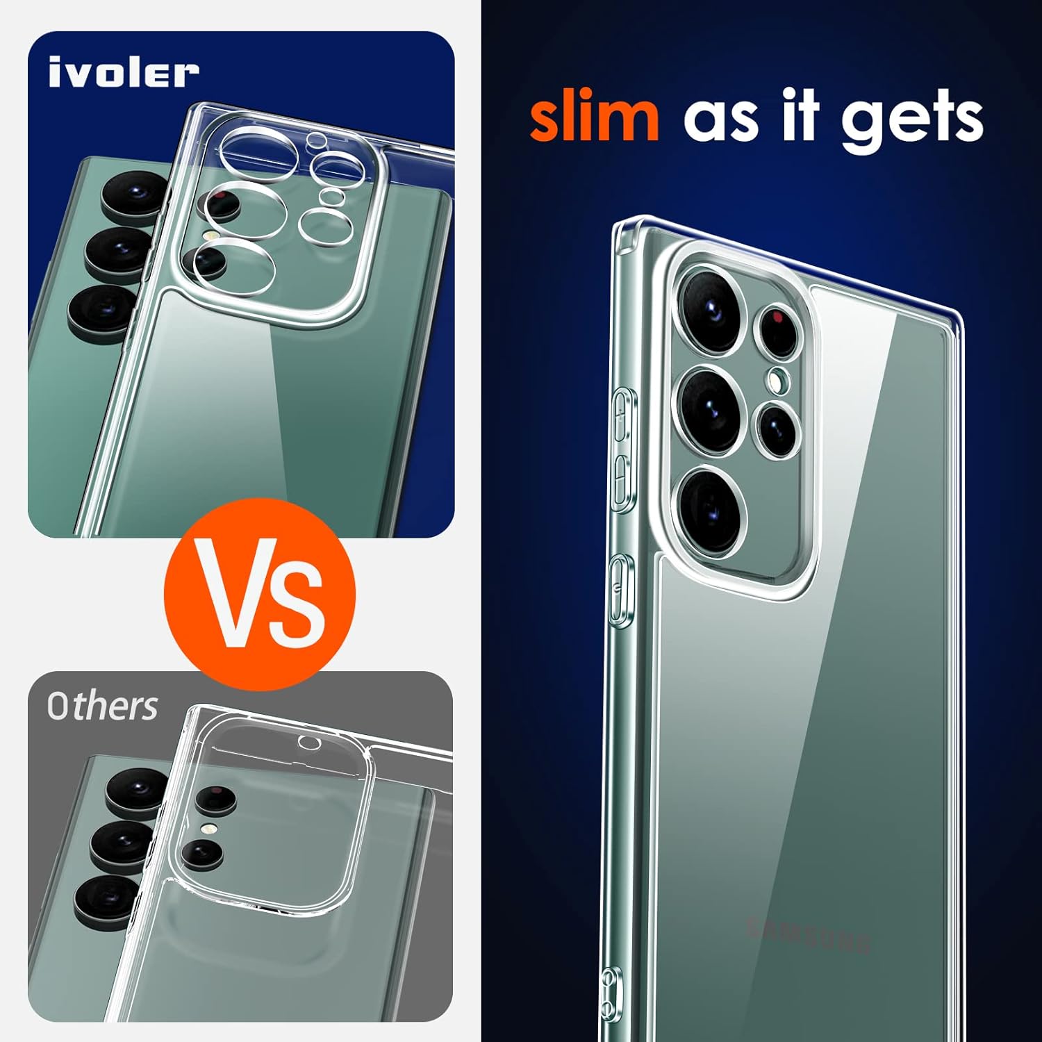 ivoler 3-в-1 калъф за Samsung Galaxy S23 Ultra 5G, 1 калъф за мобилен телефон с 2 защитни филма, никога не пожълтява, военна защита, защита на камерата, тънък прозрачен, удароустойчив