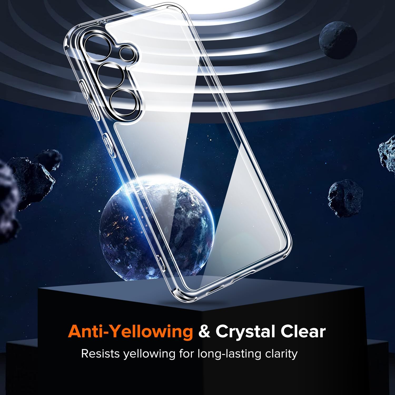 • Кристално чист и без пожълтяване: кристално прозрачният PC гръб остава без пожълтяване за по-дълго време. Използвайте ултрапрозрачния TPU материал от Германия, за да се насладите на оригиналната красота на вашия телефон. Нано антиоксидантният слой ефективно е устойчив на петна и пот, не се омазнява и не пожълтява лесно с времето, показвайки перфектно оригиналния цвят на вашия телефон.