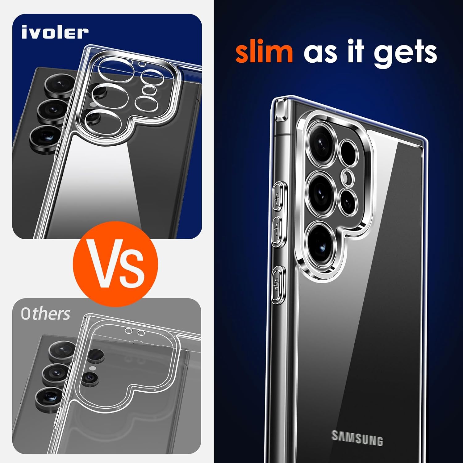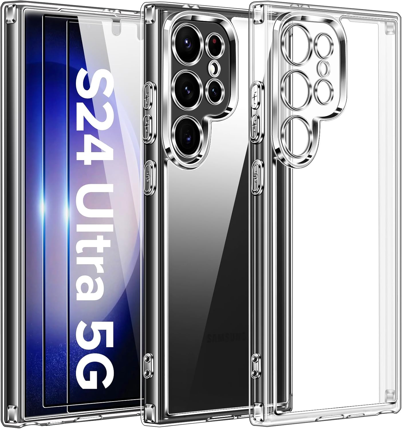ivoler 3-в-1 калъф за Samsung Galaxy S24 Ultra 5G, 1 калъф за мобилен телефон с 2 защитни филма, никога не пожълтява, военна защита, защита на камерата, тънък, прозрачен, удароустойчив