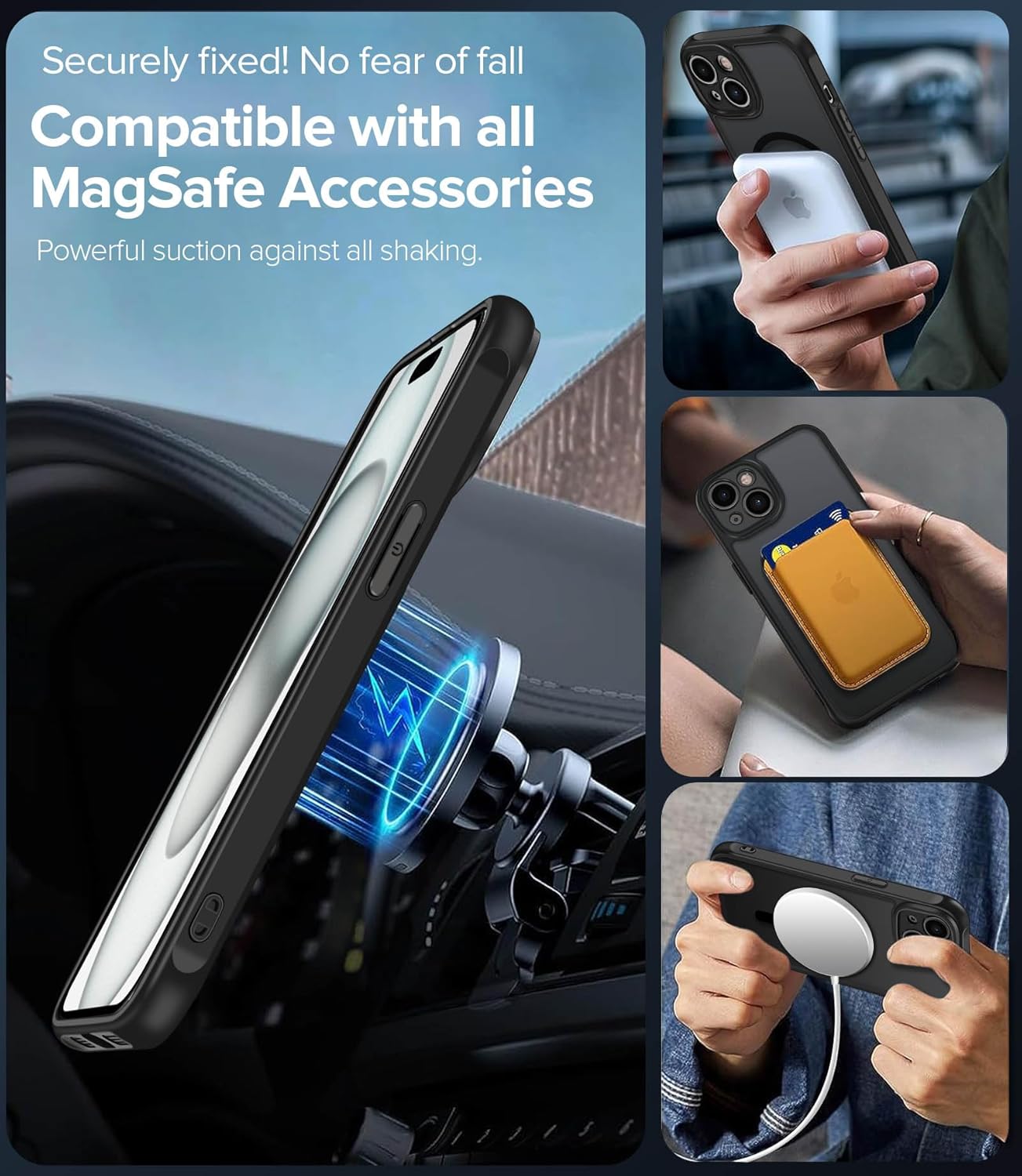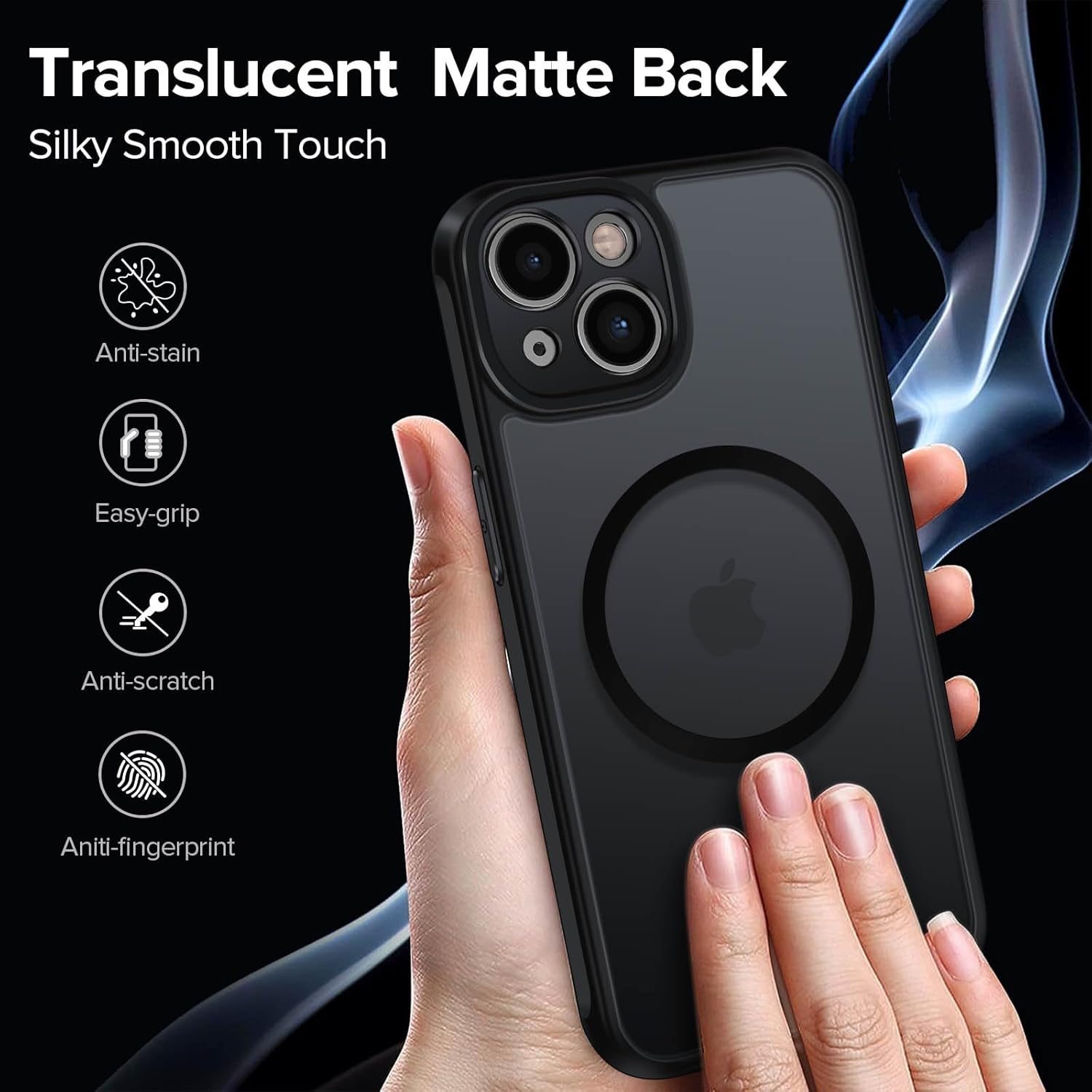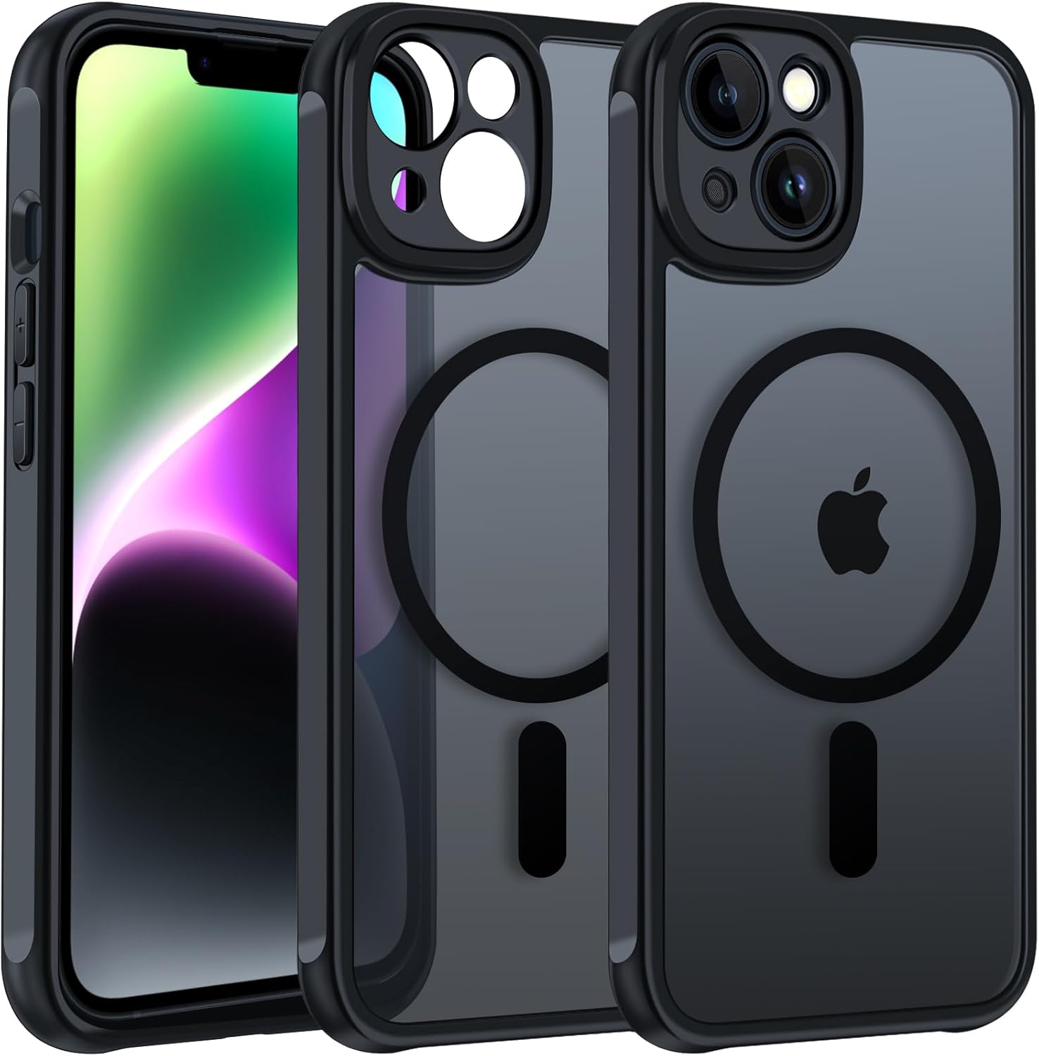 ivoler Матов черен магнитен калъф за iPhone 15 6.1 инча, съвместим с MagSafe, защита от падане по военен стандарт, удароустойчив, устойчив на надраскване, защитен калъф за гръб, тънък, течен силиконов мобилен телефон