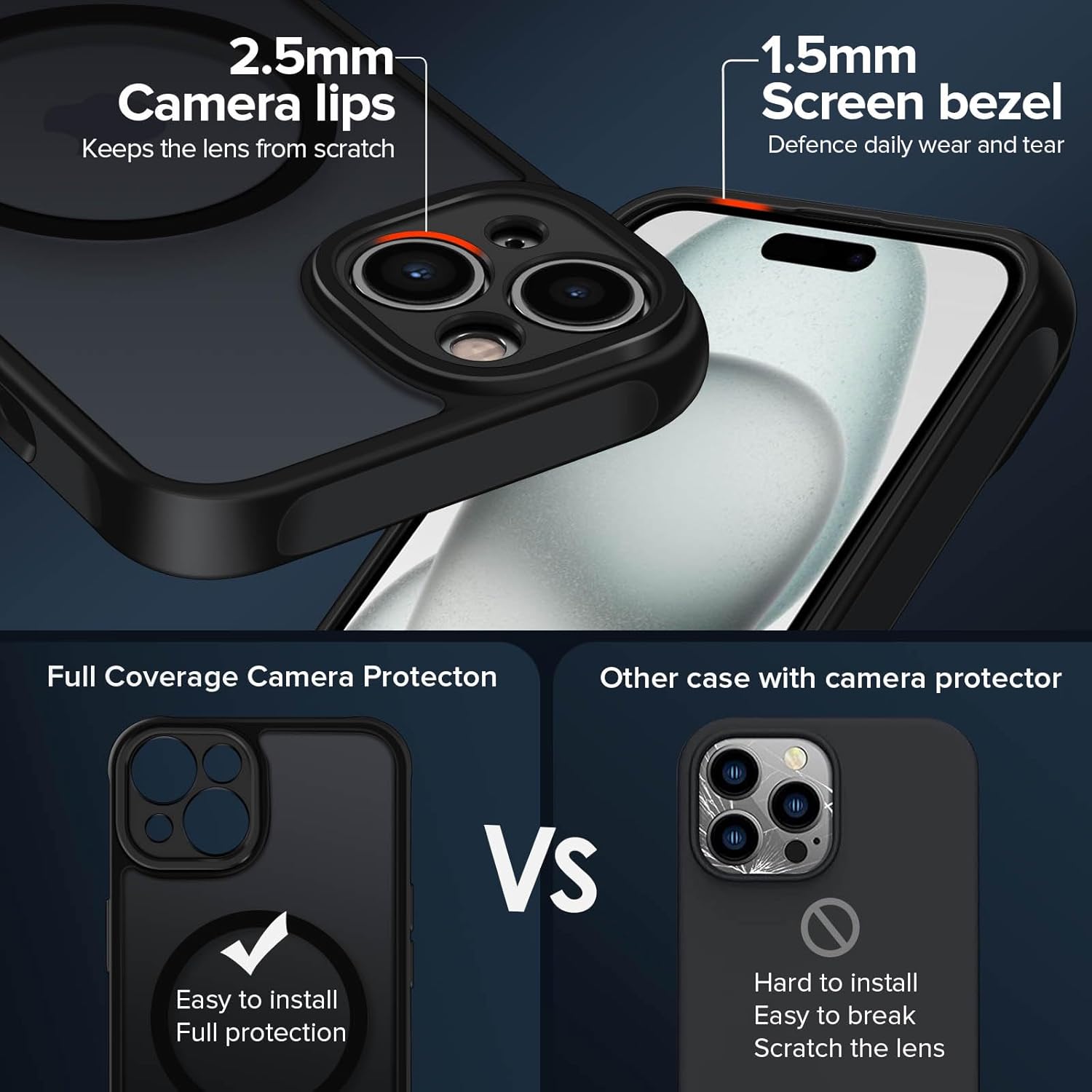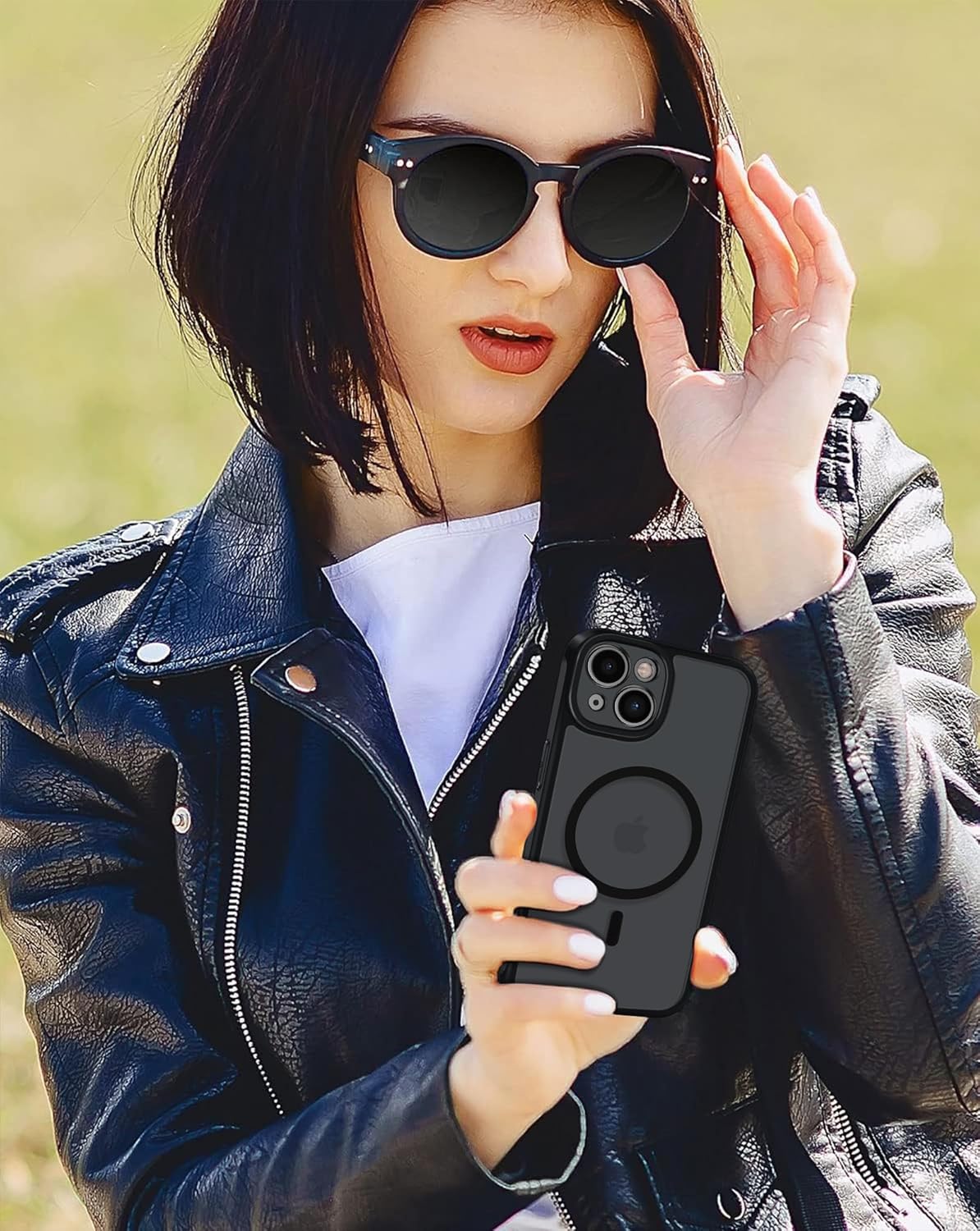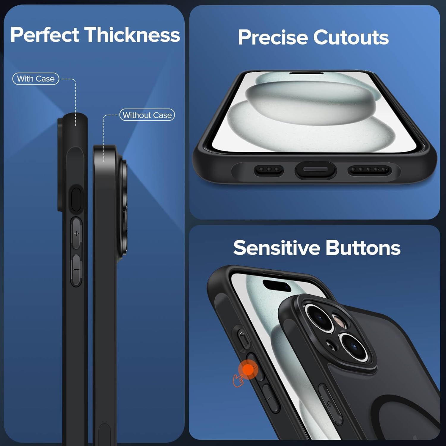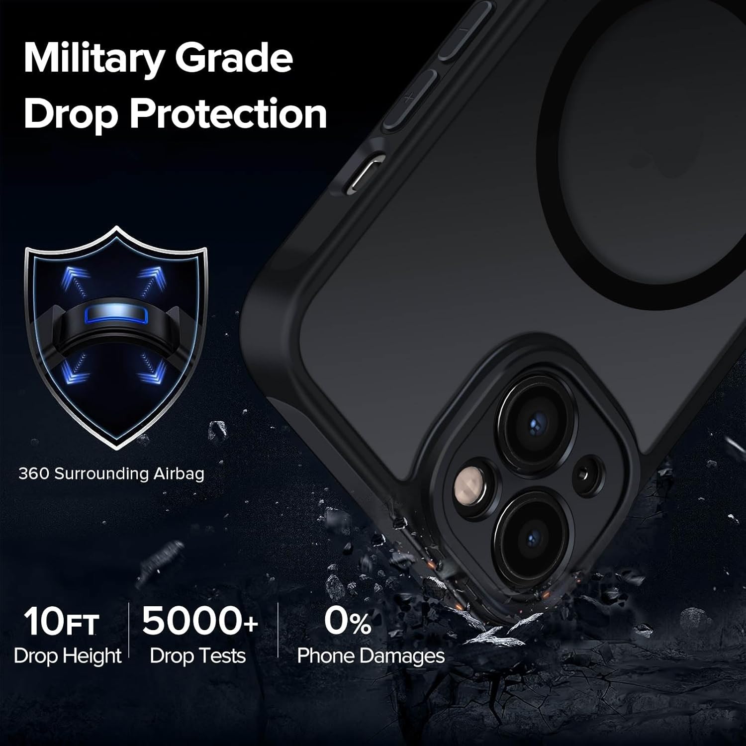ivoler Матов черен магнитен калъф за iPhone 15 6.1 инча, съвместим с MagSafe, защита от падане по военен стандарт, удароустойчив, устойчив на надраскване, защитен калъф за гръб, тънък, течен силиконов мобилен телефон