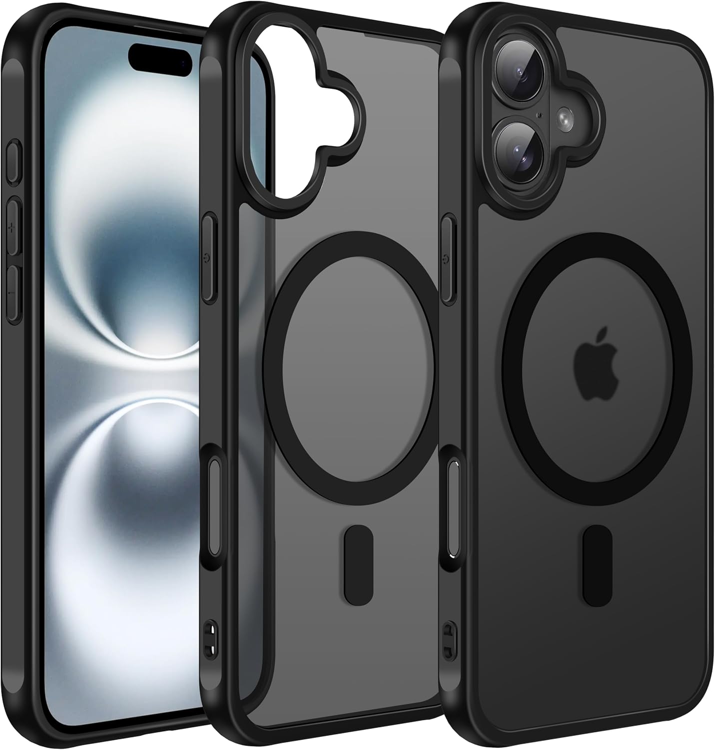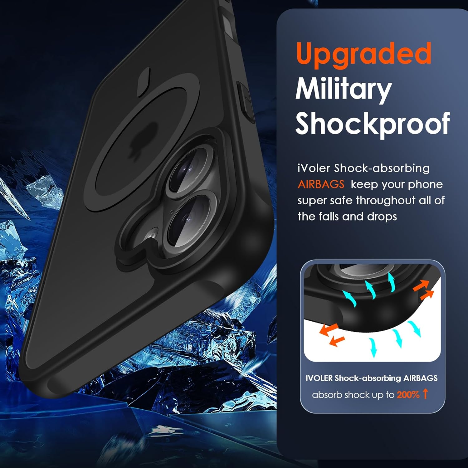 ivoler матов черен магнитен калъф за iPhone 16 Plus, съвместим с MagSafe, военна стандартна защита от падане, удароустойчив, устойчив на надраскване, защитен калъф за гръб, тънък, течен силиконов мобилен телефон