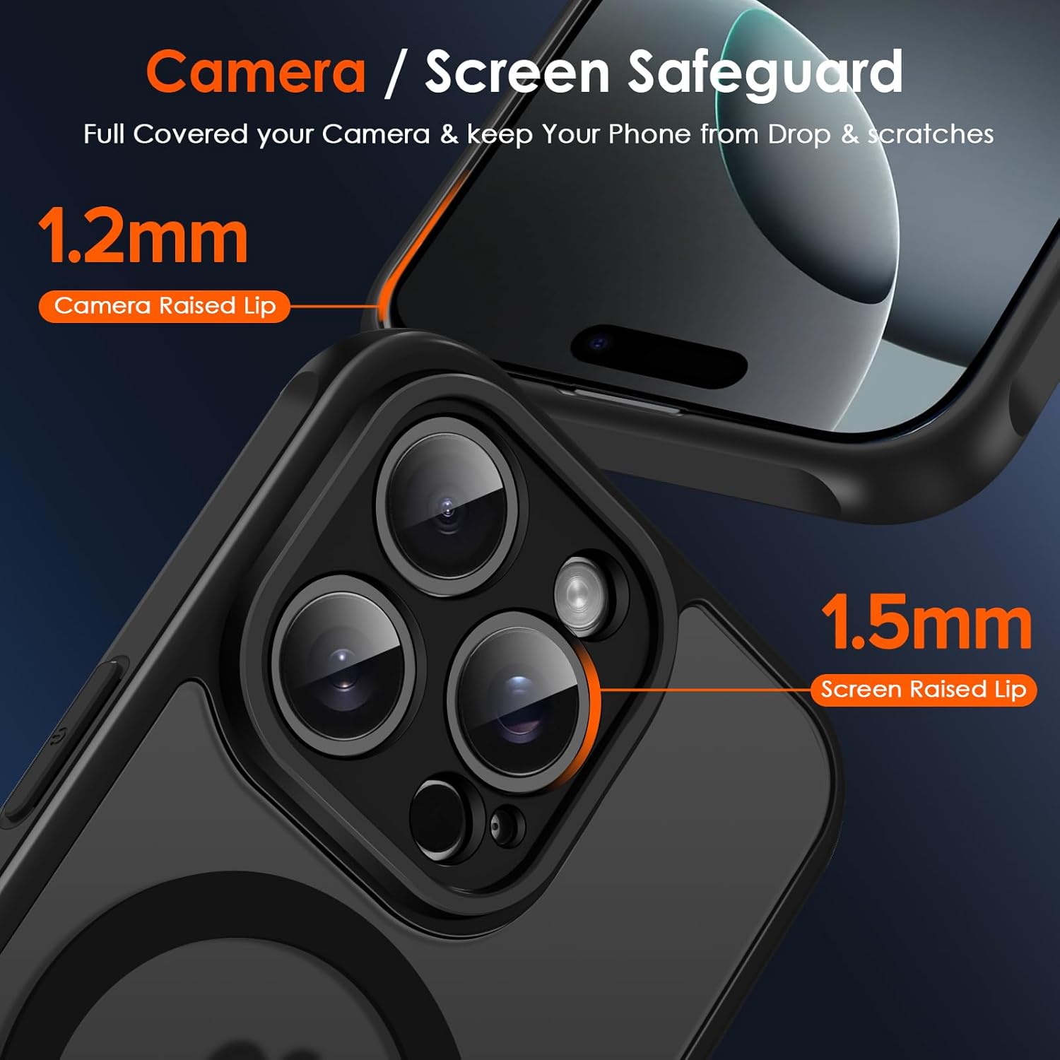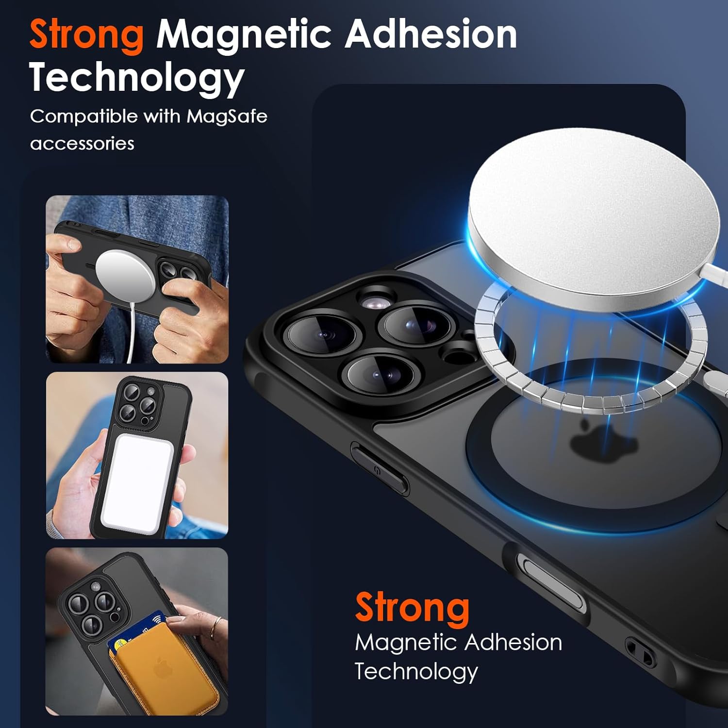 ivoler Матов черен магнитен калъф за iPhone 16 Pro Max, съвместим с MagSafe, защита от падане по военен стандарт, удароустойчив, устойчив на надраскване, защитен калъф за гръб, тънък, течен силиконов мобилен телефон