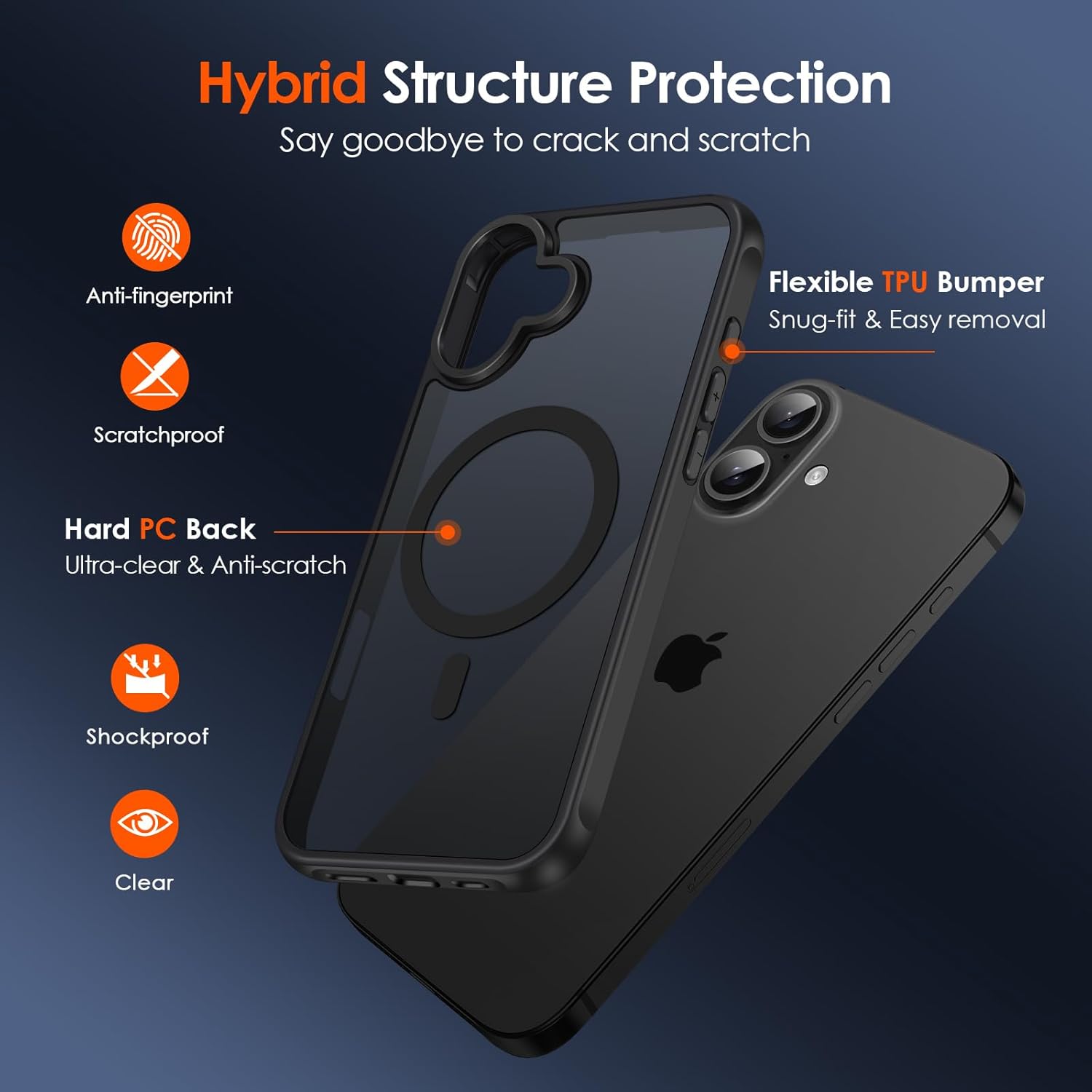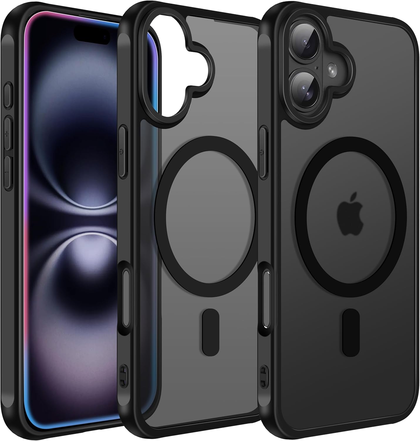 ivoler матов черен магнитен калъф за iPhone 16, съвместим с MagSafe, военна стандартна защита от падане, удароустойчив, устойчив на надраскване, защитен калъф за гръб, тънък, течен силиконов калъф за мобилен телефон
