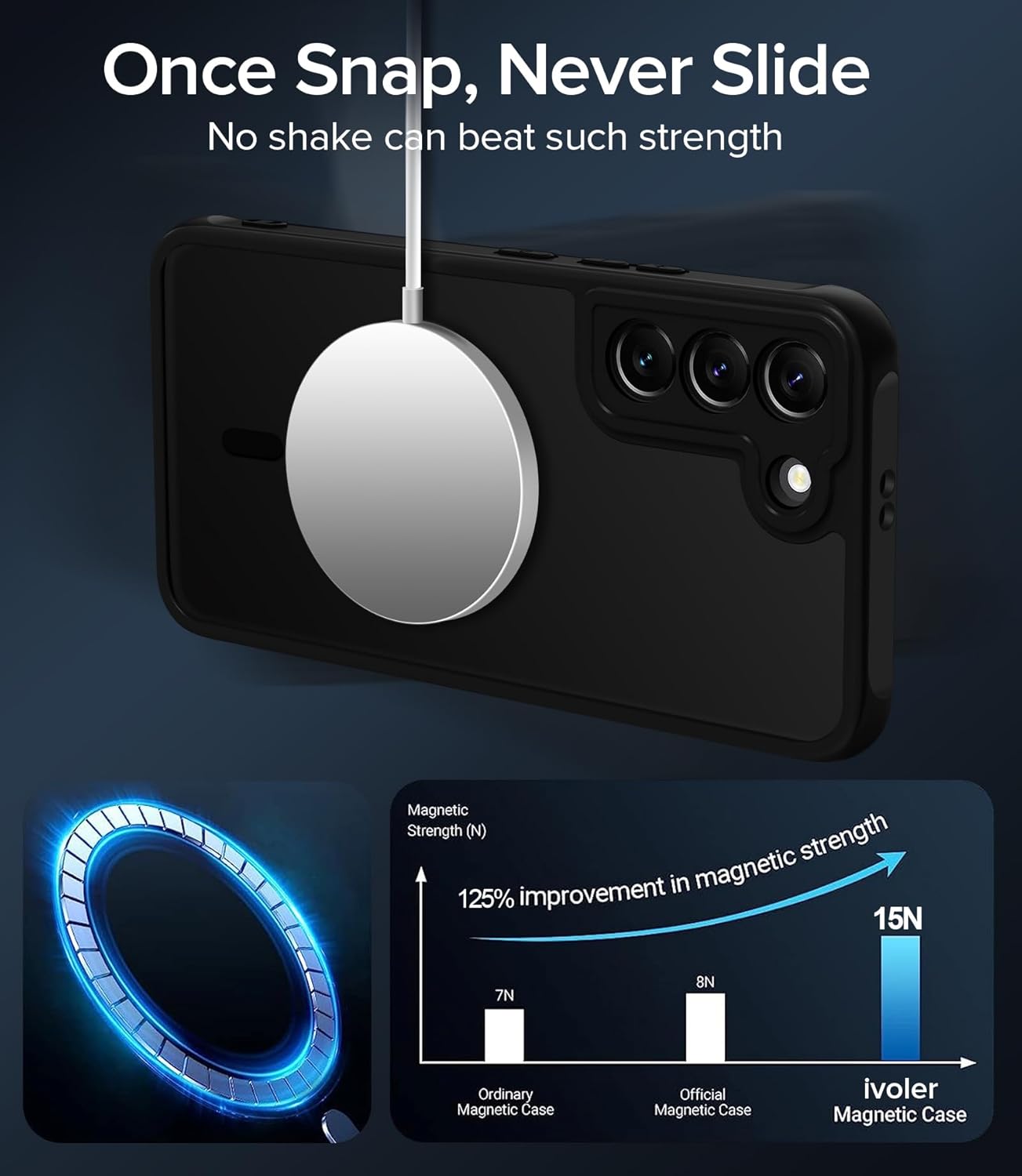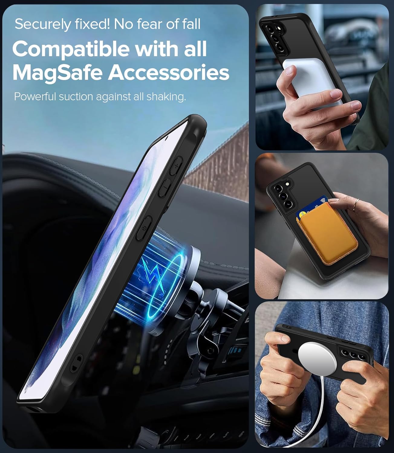 ivoler матов черен магнитен калъф за Samsung Galaxy S21+ 5G / S21 Plus 5G, съвместим с MagSafe, защита от падане по военен стандарт, удароустойчив, устойчив на надраскване, защитен калъф, тънък, течен