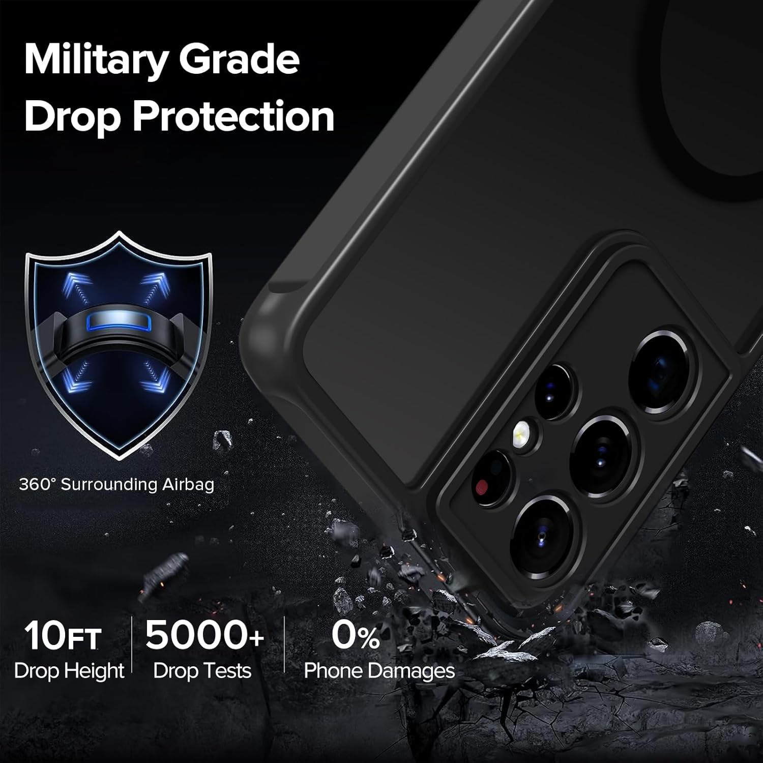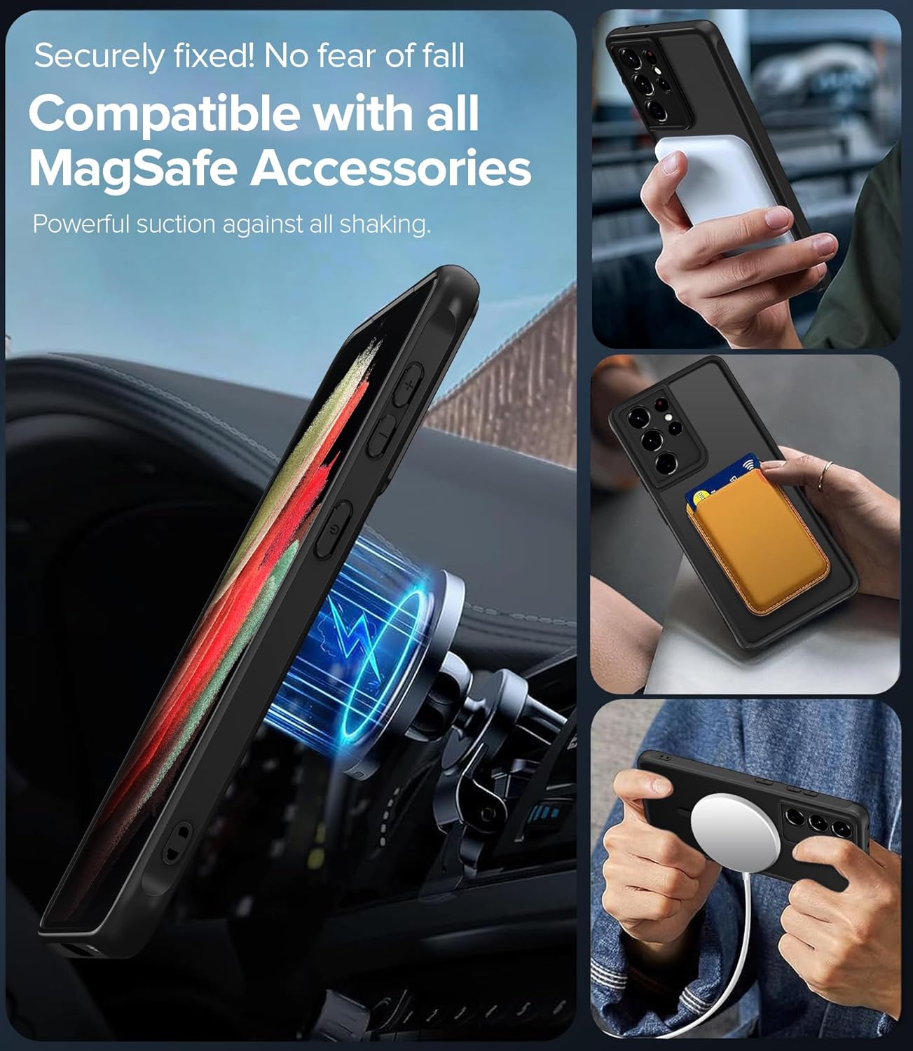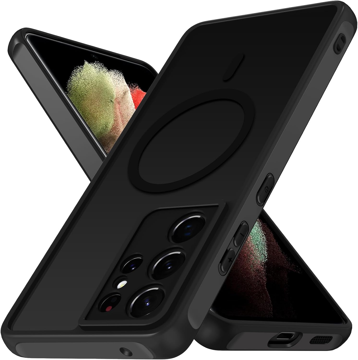 ivoler матов черен магнитен калъф за Samsung Galaxy S21 Ultra 5G, съвместим с MagSafe, защита от падане по военен стандарт, удароустойчив, устойчив на надраскване, защитен калъф за гръб, тънък, течен силикон