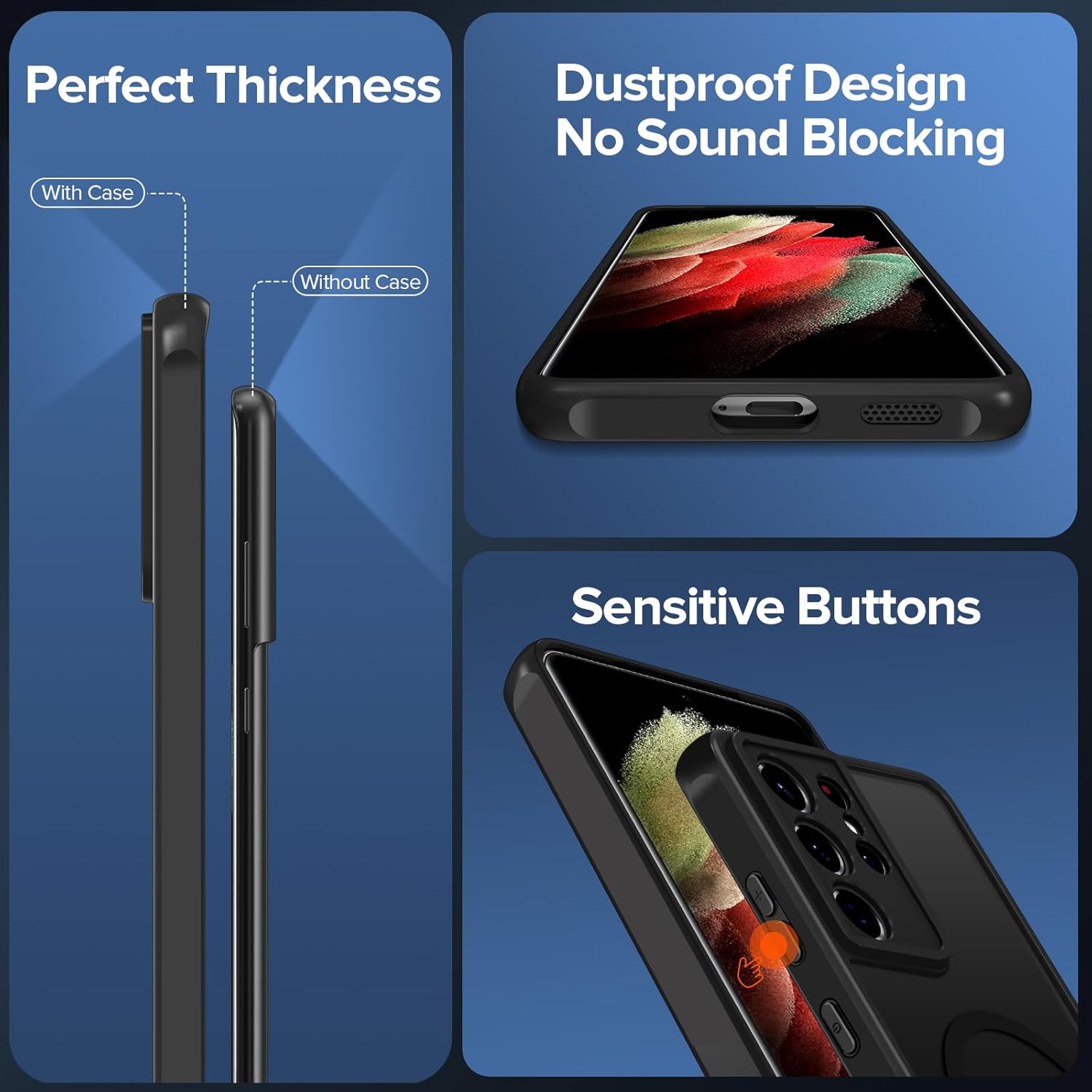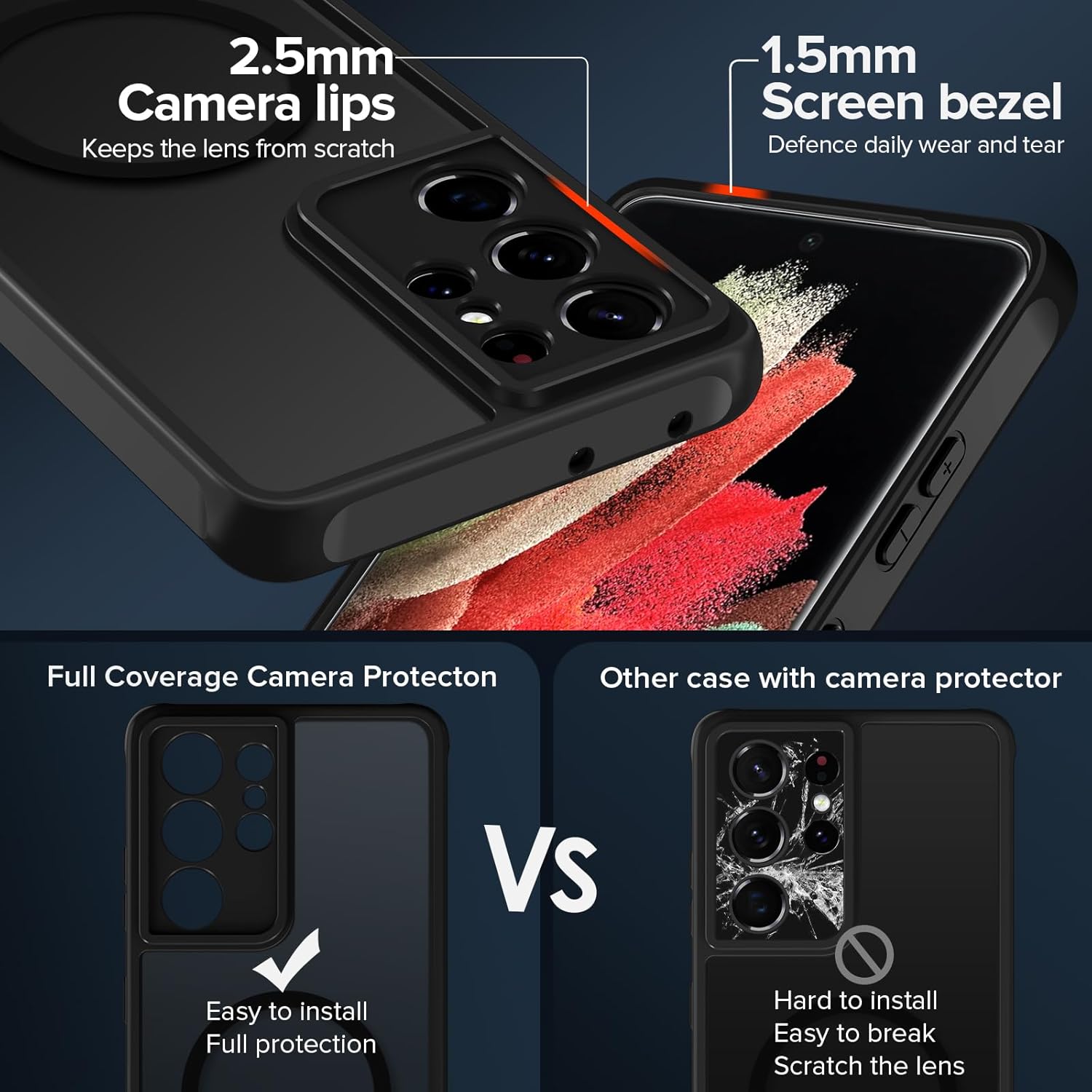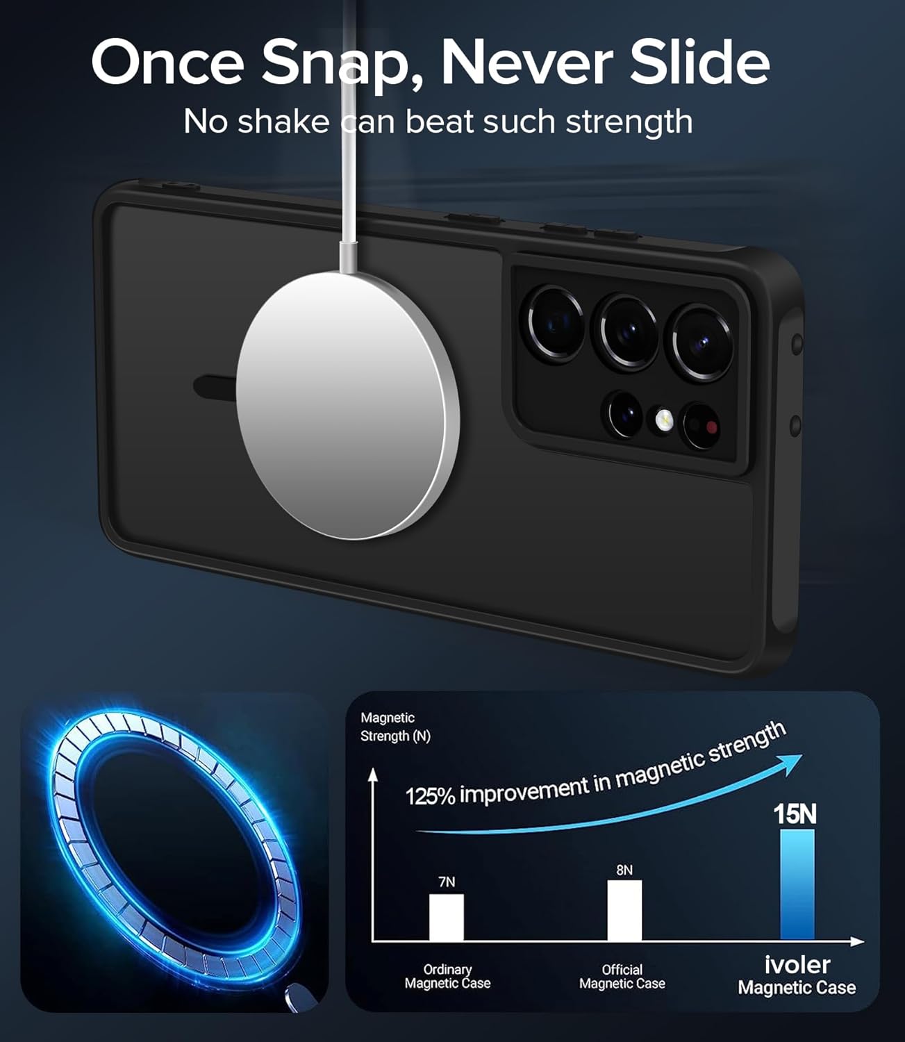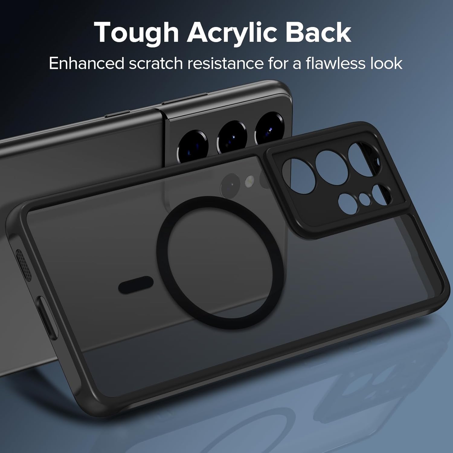 ivoler матов черен магнитен калъф за Samsung Galaxy S21 Ultra 5G, съвместим с MagSafe, защита от падане по военен стандарт, удароустойчив, устойчив на надраскване, защитен калъф за гръб, тънък, течен силикон