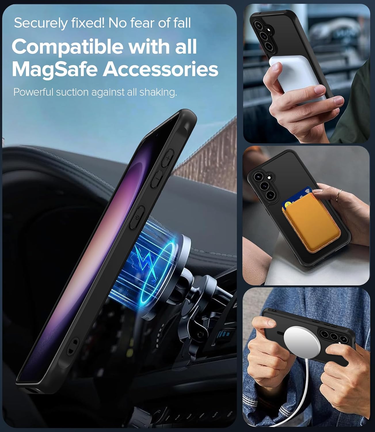 • [По-здраво магнитно закопчаване] --- Мощните вградени магнити със сила на задържане от 1500 g позволяват по-бързо и лесно безжично зареждане и сигурно закопчаване на всеки аксесоар HaloLock или MagSafe. Съвместим с всички аксесоари MagSafe, като портфейл, държач за пръстени, преносима батерия и магнитни държачи за кола и др. Това ще ви донесе повече удобство.