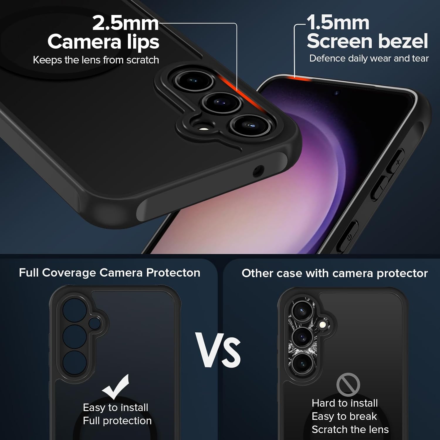 • [Повишена защита на камерата и екрана] --- Камерата и екранът са двете най-скъпи и крехки части на целия телефон. Дизайнът с пълно покритие на камерата предпазва цялата камера от надраскване. Повдигнатите ръбове около предния екран и обектива на камерата могат ефективно да се справят с последиците от внезапно изпускане или удар, без да надраскат красивия ви телефон!