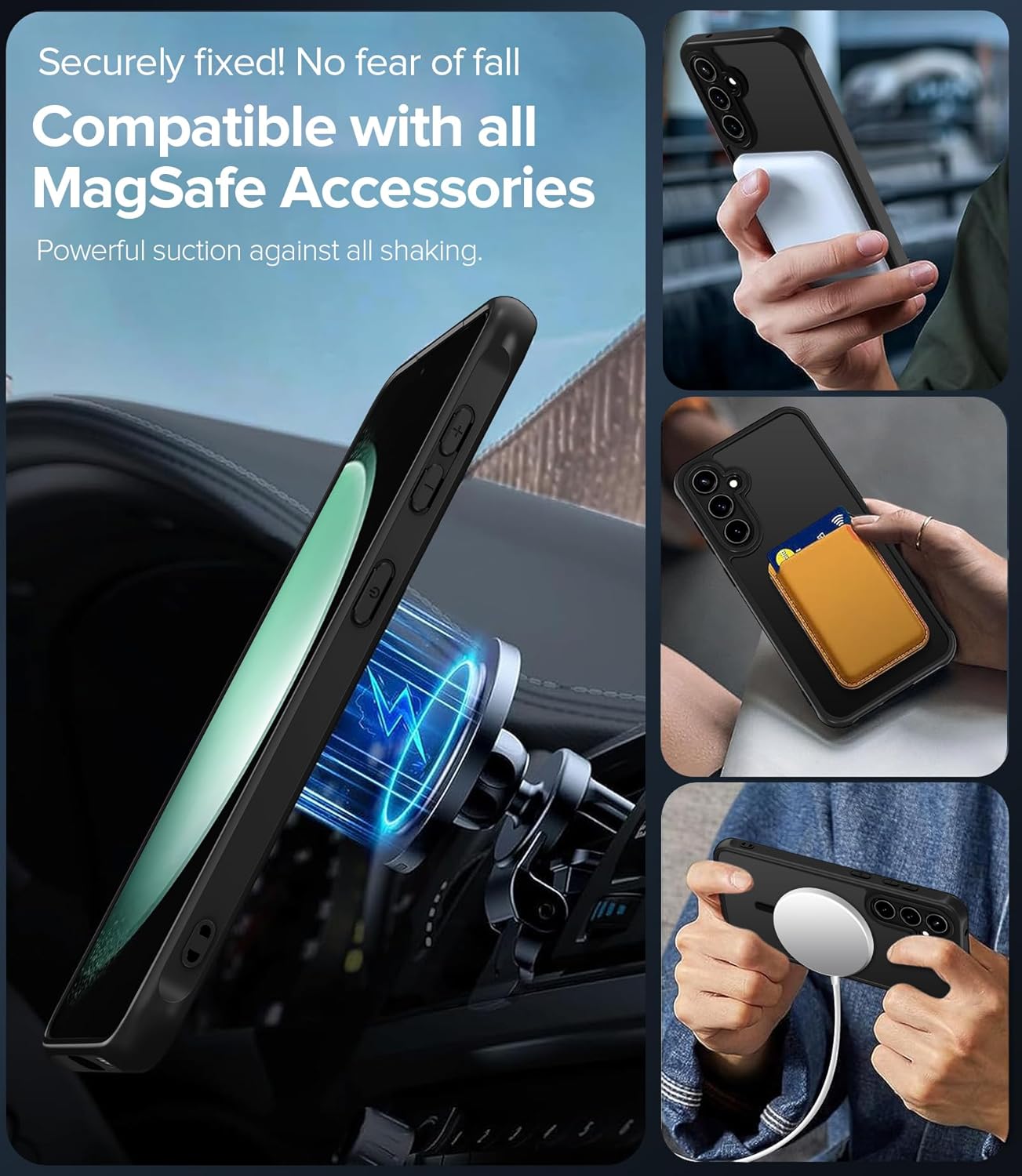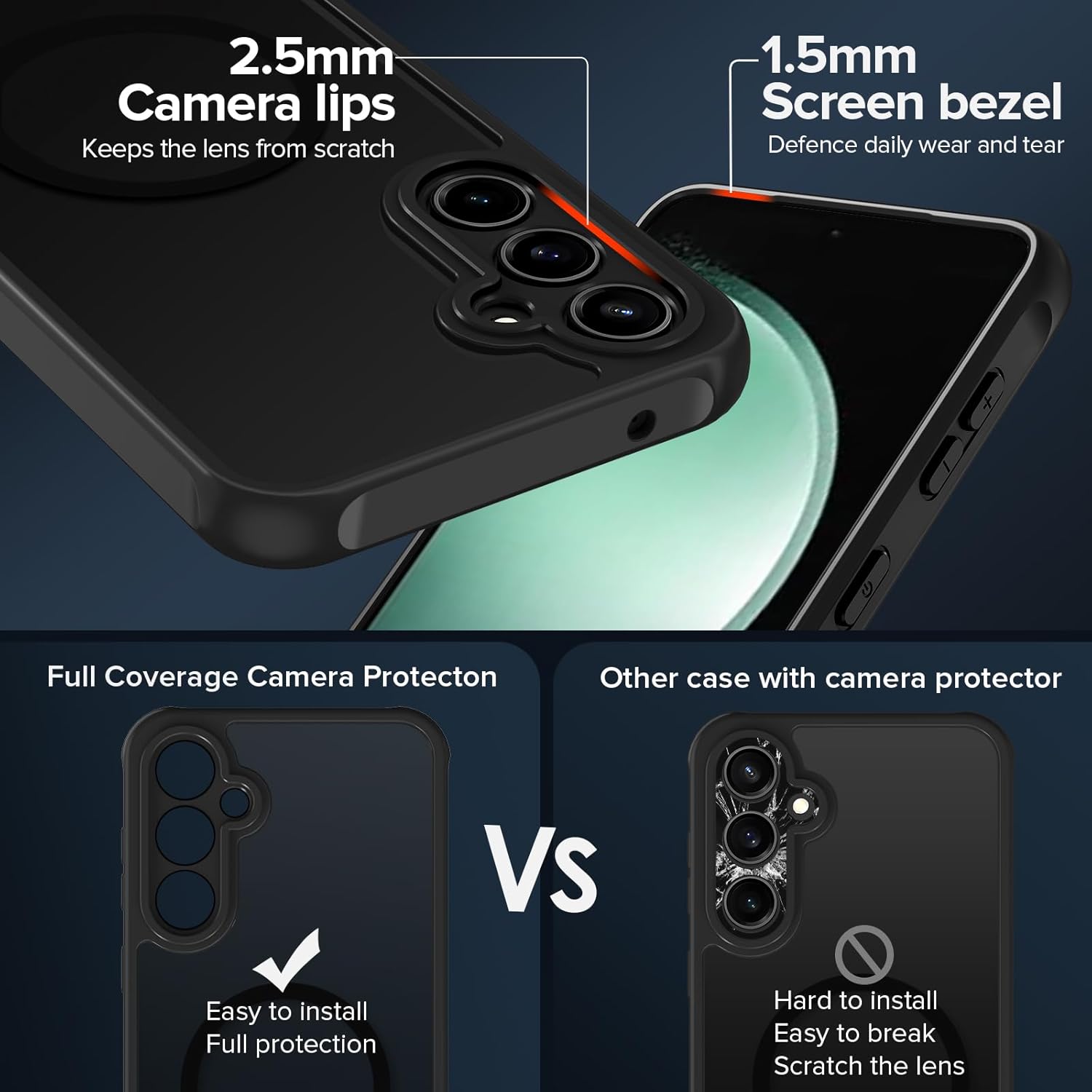 ivoler Матов черен магнитен калъф за Samsung Galaxy S23 FE 5G (Не е за Samsung S23), Съвместим с MagSafe, Защита от падане по военен стандарт, Удароустойчив защитен калъф, Тънък течен силиконов мобилен телефон